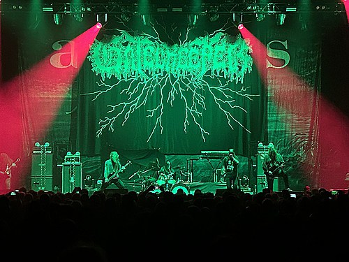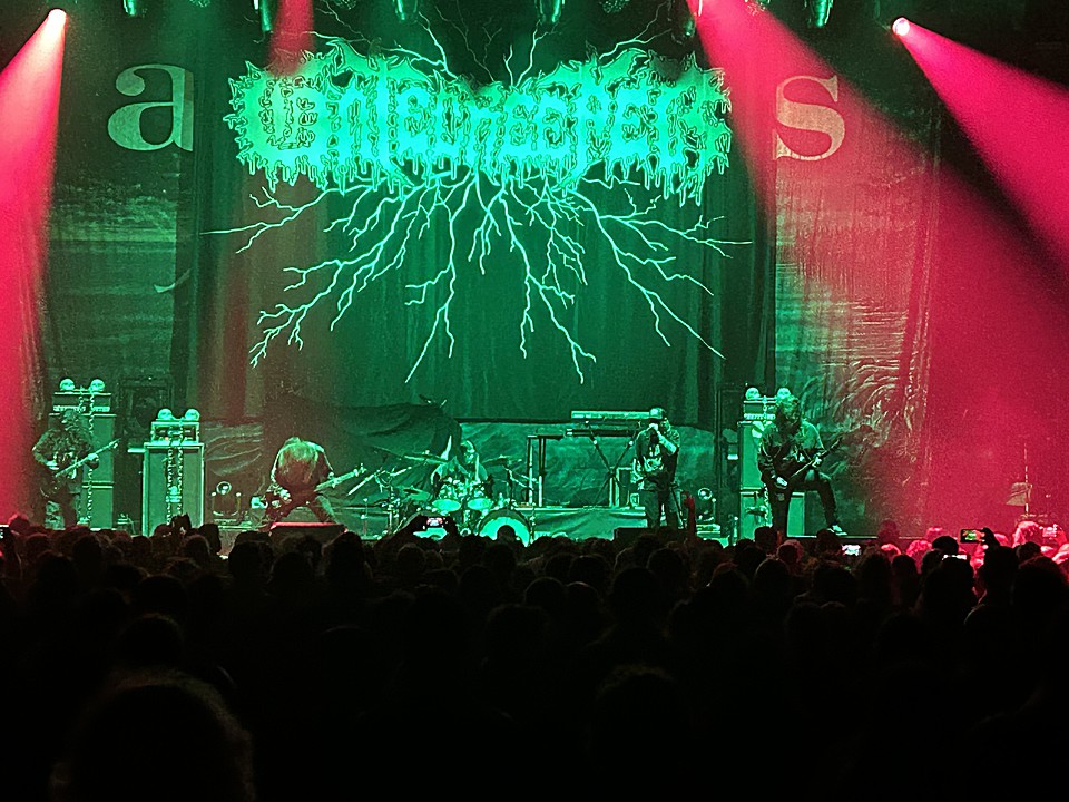 Celá dnešní show začala naprosto přesně a po celou dobu se držela plus minus maximálně jednu minutu od daného programu. Tohle zmiňuji už podruhé během krátké doby. Arizonské GATECREEPER jsem vůbec neznal a úplně poprvé jsem je slyšel až ve stařičké sportovní hale. Nemám tedy naposlouchané ani jediné z jejich tří dosud vydaných studiových alb. Jejich poměrně krátký set sestával hlavně z klasických deathmetalových skladeb amerického znění. Zpěvák pěl nebo spíše řval po celou dobu v jedné tónině a to nějak nemám rád, protože mi to přijde laciné. Nicméně i přesto, že byli kapelou otevírací, své příznivce si v publiku našli. Kapela totiž dokázala fandy pod pódiem skutečně rozhýbat a strhnout, za což před ní musím smeknout klobouk. Být předskokanem není úplně záviděníhodná situace. GATECREEPER zde uvedli také svoji novou skladbu, která byla poměrně jiná, více melodičtější a méně deathová.