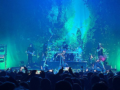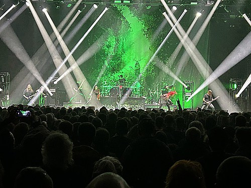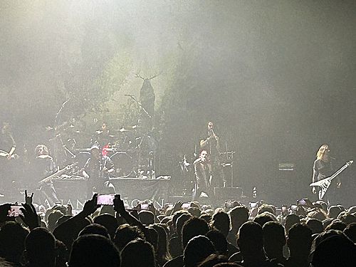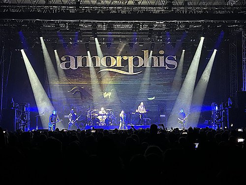 Kde se vzalo to nepsané pravidlo o tom, že předkapely musí mít horší zvuk než hlavní hvězda večera? Už GATECREEPER měli nejhorší zvuk z celé čtveřice, stejně tak následující AMORPHIS neměli zvuk o mnoho lepší. Kupodivu bicí byly u všech kapel nazvučené podobně – celkem slušně, ze všech nástrojů byly vždy nejlépe slyšet. Ostatní nástroje byly v úvodu setů utopené v jedné zvukové kouli. Představte si, jako by kapela hrála za rohem nebo že mezi vámi a kapelou bylo průhledné sklo o síle cca půl centimetru. Teprve až po třetí skladbě AMORPHIS se zvuk hodně zlepšil, haproval akorát zvuk u kláves, který vždy ze začátku jejich partů nebyl slyšet a pak „naběhl“. Možná je pak lepší, když nemáte hudbu tak naposlouchanou jako já. Já se snažím najít vždycky všechny jemné nuance a tóny, ale živé hraní je prostě trošku jinde, občas jsou tu jiné aranže. Pochopitelně. AMORPHIS jsem myslím během těch třiceti čtyř let viděl minimálně potřetí a opět se mi líbili, ne tak jako při jejich samotném koncertu v Helsinkách, ale i tady na velkém pódiu. Sice byla kapela statičtější než GATECREEPER, nicméně si to jejich hudba v klidnějších partech možná i vyžadovala. Nejvíce „pohyblivý“ byl nakonec zpěvák Tomi Joutsen. Navíc zpíval jako o život. Prostě tomu bych dal dneska jedničku s hvězdičkou, celé kapele pak dvojku. AMORPHIS zahráli dvě novinkové skladby „Bones“ a „Dancing Shadow“ a pak jakýsi menší průřez jejich tvorbou za posledních dvacet let. Kvitoval jsem návrat ke skladbě „Black Winter Day“ z „Tales From The Thousand Lakes“ z roku 1994, desky, která je dnes jedním z klenotů devadesátých let. A byla jedinou dnes zaznivší skladbou této dekády. AMORPHIS se mi líbili asi nejvíc z celé čtveřice, protože stojí na mém žebříčku výše než hlavní hvězdy ARCH ENEMY. Asi dvakrát se mi stalo, že jsem se zaposlouchal opravdu do hloubky a začal mi běhat mráz po zádech. A tak by to mělo být…