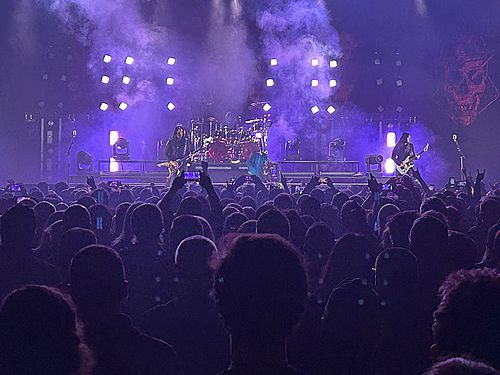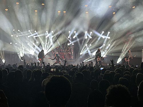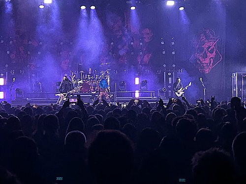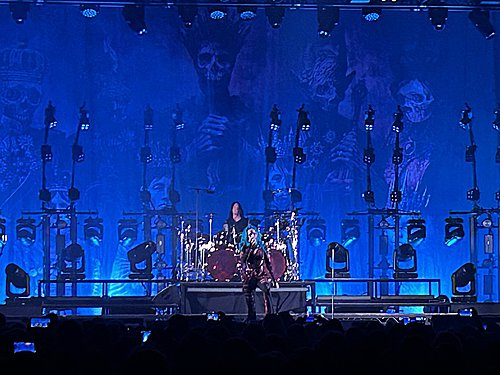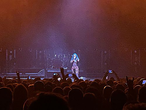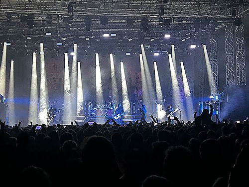 Scéna se zavřela plachtou s nápisem „Pure Fucking Metal“ a bylo jasné, co přijde následně. ARCH ENEMY. Kapela, která je již notně dlouho v laufu, určitě tomu také přidala postava zpěvačky Alissy White-Gluz, která je její součástí už 11 let! Nicméně atraktivita této slečny / dámy je pořád skvělá, ne? Modré vlasy až na zadek, přiléhavá moderně metalová proužkovaná / pocákaná kombinéza, super skvělá fyzická kondice. To vše také patřilo mezi všechny propriety celé show. Show s velkým „S“. Nedá se srovnat světelný park s dosud vystoupivšími kapelami. Rotující lasery, velké plochy světel měnící se ve všech barvách, blikající „teploměry“ evokovaly ohně, reflektory vytvářející pekelný dojem. K tomu si ještě přičtěte o třídu lepší zvuk a skvělé muzikantské výkony. Mezi nimi excelovali především bubeník alias mlátička, kultovní postava dřívějších kapel CARCASS či BRUJERIA – Daniel Erlandsson a brilantní kytarista Michael Amott, vůdčí to postava ARCH ENEMY.