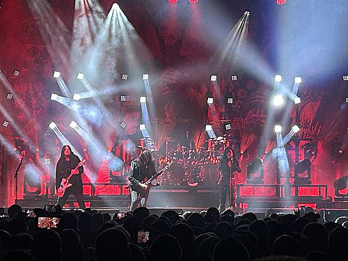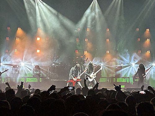 Vždycky, když ukazuji klipy ARCH ENEMY mým známým nemetalovým mudlům, nevěří, že to je Alissin vlastní deathový vokál, anebo něco v tom smyslu, že si oddělá hlasivky během jednoho koncertu. Jenže deathový growling lze naučit bez poškozování hlasivek. Proto její řev, křik a občas i čistý vokál neztratil během celé show lesk. Jsem rád, že z novinkového alba „Blood Dynasty“ zazněly celkem čtyři skladby a téměř po třech dalších z dalších šesti alb. Čili, tady už byl prostor na pořádný průřez tvorbou. Tohle prostě bylo představení par excellance. Světla, zvuk, pódiové nasazení, muzikantské výkony a v neposlední řadě samozřejmě kvalitní melodický death metal. Takže vystoupení lze hodnotit prostou známkou – jednička s hvězdičkou pro celou kapelu a její ansámbl. Ale opět nakonec říkám, že pro mě byli tento večer AMORPHIS tou pomyslnou třešničkou na dortu.
