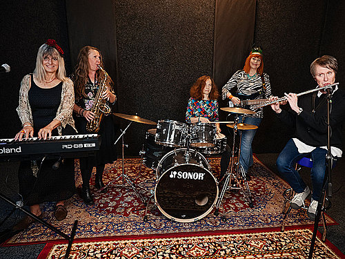 ZUBY NEHTY v současnosti opět vystupují jako ryze ženská skupina (ze sestavy se vytratil basák Jan Maxa, který v ní byl od roku 2011), nyní ji tvoří Marka Míková (klávesy, zpěv), Kateřina Jirčíková (flétna, saxofon, zpěv), Alice Flesarová (saxofon, zpěv), Jana Kaplanová (bicí, trubka, zpěv) a Pavla Jonssonová (baskytara, zpěv). Za více než čtyřicet let existence mají ZUBY NEHTY kde brát, kromě šesti řadových alb mají na kontě i nějaké výběry, pod názvem DYBBUK EP a živák, neoficiální záznamy zbyly i po PLYNU. A několik prastarých věcí zaznělo i ve sváteční nedělní večer ve Strakonicích. Začalo se jednou z těch vousatějších písní, která má dokonce dva názvy; pod správným „Hrob je prázdný“ nemohla v roce 1987 vyjít na sedmipalci, tak byla přejmenována na „Petr a Jan“. Hrálo se hlavně z posledních dvou alb „Kusy“ a „Srdce ven“, ale opomenuto nebylo žádné album, ani časy PLYNU a DYBBUKU (vedle „Hrobu“ došlo na „Mouchy“ nebo „Podivnou kuchařku“), logicky nechybělo několik „Paní“ včetně zřejmě novinky „Paní VIII“. Z desek z devadesátých let mi největší radost udělaly „Vodopády“ a „Havrani“, těmto geniálním kouskům pak zdatně sekundoval „Srdeční“ „El Capitan“, při jehož druhé polovině mi regulérně naskočila husí kůže. Celý koncert měl neuvěřitelný spád, ke kterému přispívalo nejen střídání nálad a temp písní, ale i zpěvů – různou měrou se zapojily všechny hudebnice včetně bubenice. Ta v jedné písničce dokonce stihla jednou rukou bubnovat a v druhé držet trubku, respektive nejen držet, ale ještě na ni hrát. Hodinový koncert utekl strašně rychle, došlo sice na dva přídavky, ale i tak… dovedl bych ZUBY NEHTY poslouchat dvě hodiny. Kdybych měl vystoupení popsat dvěma slovy, tak „čirá radost“.
