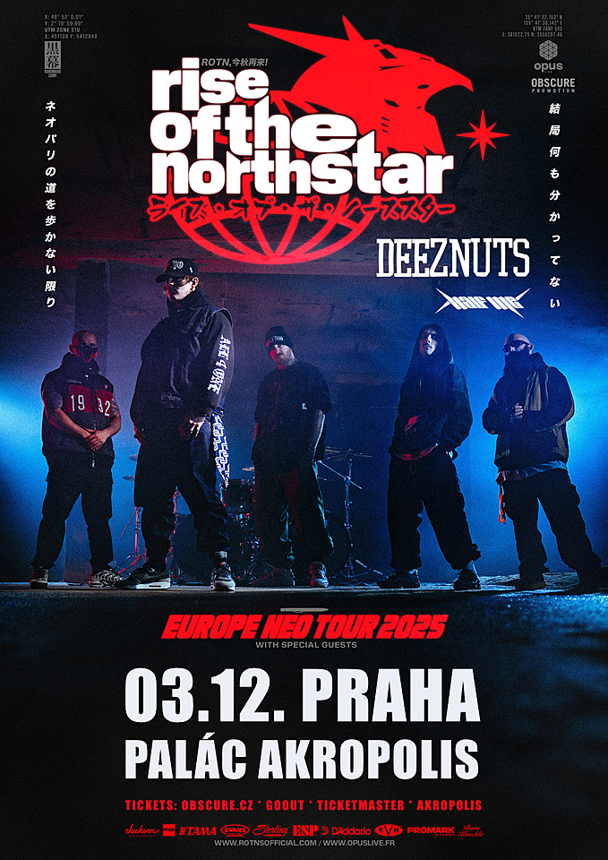 Francouzský žánrový chameleon Rise of the Northstar se řítí na Prahu! Tento pařížský kvintet už od roku 2008 posouvá hranice mezi hudebními žánry i vizuální identitou. Jejich tvorba v sobě míchá tvrdost hardcore a thrash metalu s hip-hopovými rytmy a agresivními beaty a je z ní cítit silná láska k japonské popkultuře - od mangy až po streetwear. Už na první pohled jsou nepřehlédnutelní: stylizovaní jako postavy z šonen mangy s energií, která strhává davy.