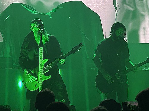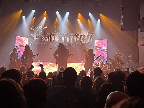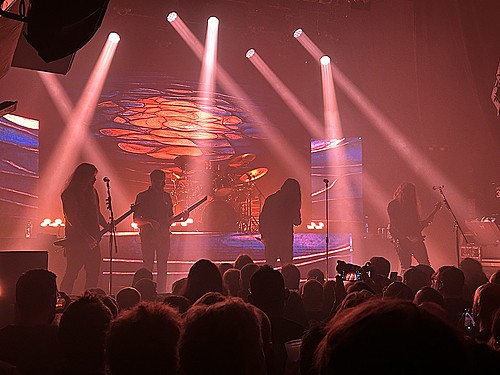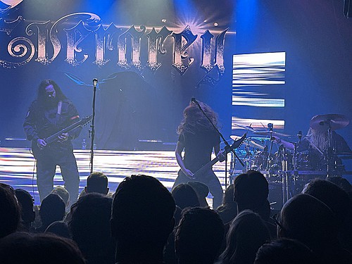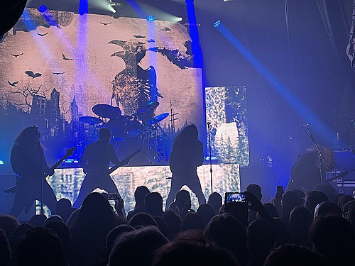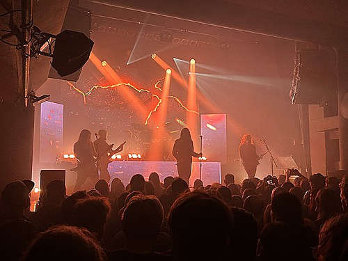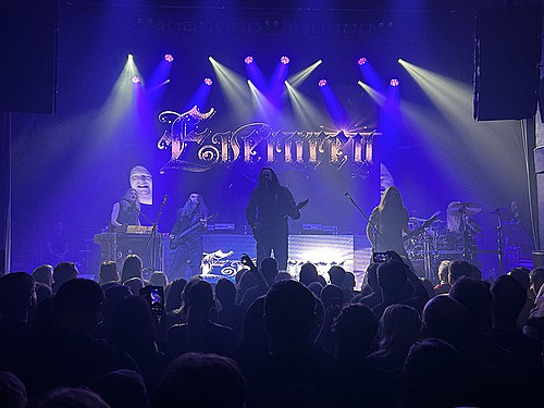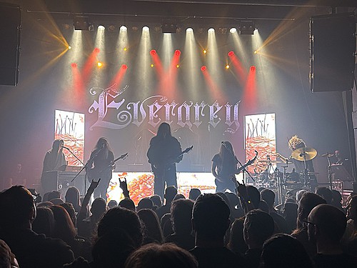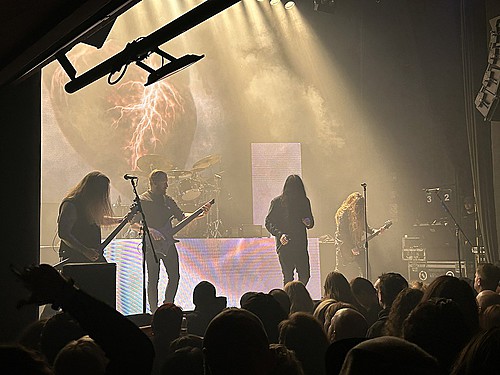 Oproti relativním nováčkům KLOGR jsou Švédové EVERGREY letitou kapelou, která má už něco za sebou. Její kořeny sahají až na počátek devadesátých let. EVERGREY propagují na tomto turné svou poslední, čtrnáctou desku „Theories of Emptiness“ z roku 2024. Přiznám se, že EVERGREY jsem předtím nesledoval a jejich bohatou tvorbu neznal. Proto jsem se na počátku jejich vystoupení trochu ztrácel a nějak jsem nemohl pochopit styl, který produkují. Přitom přítomné osazenstvo reagovalo na jejich vystoupení už od prvního tónu a samozřejmě velmi vřele a pozitivně. Teprve po nějakých třech čtyřech skladbách jsem se trošku chytil a začal se lehce hýbat do rytmu. Ano, cítíte správně, nějak jsem s EVERGREY celkově nesouzněl a nepřirostli mi moc k srdci. Zkusím vysvětlit proč. Jejich hudba je totiž postavena na šlapavé rytmice a řekněme jednodušších kytarových partech, které jsou hodně podladěné, a dále na čistém uhrančivém zpěvu Toma S. Englunda, který často přechází do snadno zapamatovatelných chorálů, které si v podstatě vzápětí mohou fanoušci zpívat s kapelou. A právě tohle je možná laciná stavba, která mně osobně nevyhovuje, ale rozumím jiným jejich obdivovatelům. Zatěžkaná chytlavá rytmika, jednoduché melodie, náladové songy, naléhavý zpěv. To jsou znaky EVERGRAY. Jisté kvality kapela má. Líbí se mi propojení progresivního metalu s tímto typem zpěvu. Rozhodně mají kluci svůj ksicht, ale možná ta jednoduchost je pozicovala do nižší třídy metalové ligy. Na tu první zřejmě zatím nemají.
