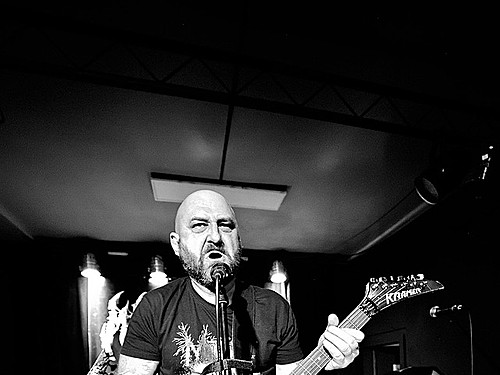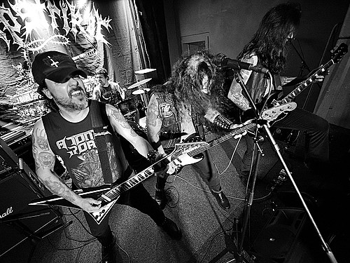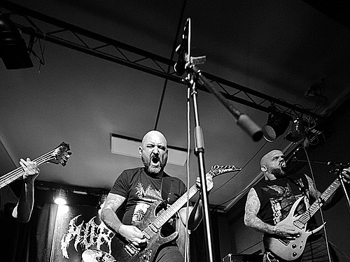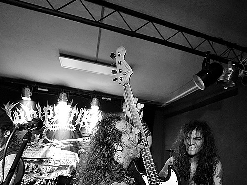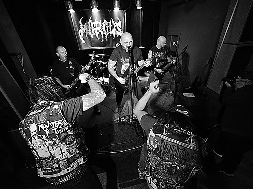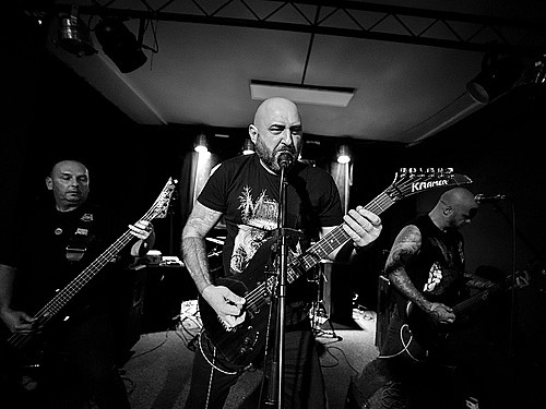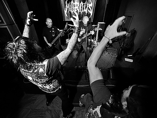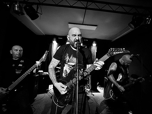 Krátce po 19. hodině to odpálili MOROUS, kteří už to drhnou cca rok, během kterého jsem je viděl třikrát ve třech. Leč sestava se rozrostla o Rámuse (BOHEMYST), takže čtvrté setkání bylo jiné. Rámus se chopil baskytary (podobně jako v MASTER´S HAMMER) a ještě více zahustil sound deathmetalové party, která to mydlí v staroškolském duchu a moc se s tím nepáře. Tentokrát jsem nebyl úplně nadšený ze zvuku, který byl lehce zahuhlaný, ale dojem to až tak nekazilo, „MOROUSOVÉ“ to prostě valili a valili, o vokály se dělili oba kytaristé, přičemž oba ta chrlili zhluboka a já vzpomínal na jejich začátky a Žroutův, jak říkal Korek, hysterák. Škoda, pestřejší hlasy by se mi líbily víc. Co se mi ale líbilo hodně, byla Alešova masáž bicích, tento večer neměl drobný bijec konkurence. Závěrečný cover DEATH nemohl chybět a po třiceti minutách bylo po prvním masakru.