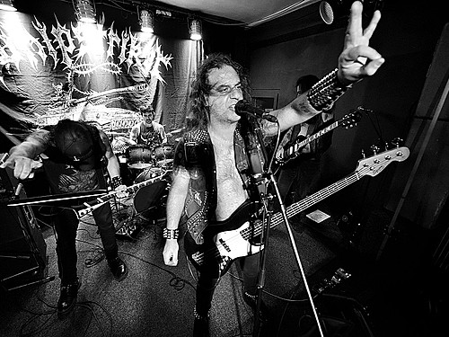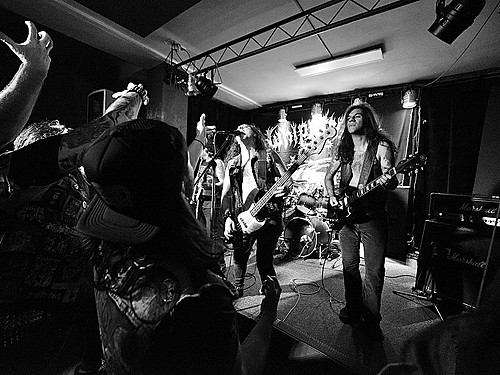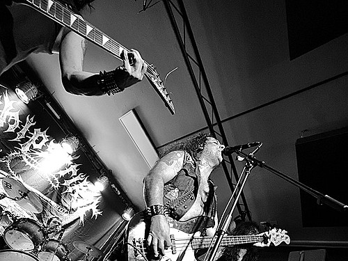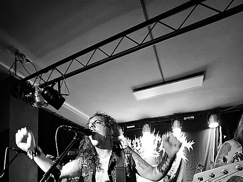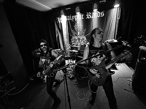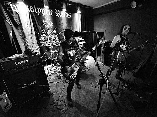 Druzí Brazilci APOKALYPTIC RAIDS (rovněž potřetí na místě činu) mi tak zajímaví nepřišli. Muzika byla o poznání jednodušší, „dřevnatější“ a hlavně zvukově zmršená. Nevím, jestli to tak tři draci chtěli, ale mě se to netrefovalo do uší. Proč? Protože baskytara. Ta totiž úplně přebíjela kytaru, která byla slyšet jen s jistou dávkou fantazie. Druhou potíží byly bicí – ne že by nebyly slyšet, ale ta jejich monotónnost. To byla tupost, nikoliv kreativita. Když jsem tyhle neduhy hodil na váhu, nemohlo je převážit to ostatní, což byl snad ještě starší metal než v případě jejich krajanů, navíc zúžený na dejme tomu tribute HELLHAMMER. Ne, že by to bylo úplně marné, cca dvacet minut jsem si poslechl s chutí, ale poté už se mi to začalo slévat a přišlo mi, že se kapela opakuje.