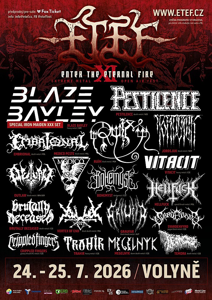 ETEF = (old school metal + přívětivé prostředí prvorepublikového koupaliště + rodinná přátelská atmosféra + levné občerstvení + stanování zdarma přímo v areálu + parkování zdarma max. pět minut pěšky) = zábava pro metalové tradicionalisty!