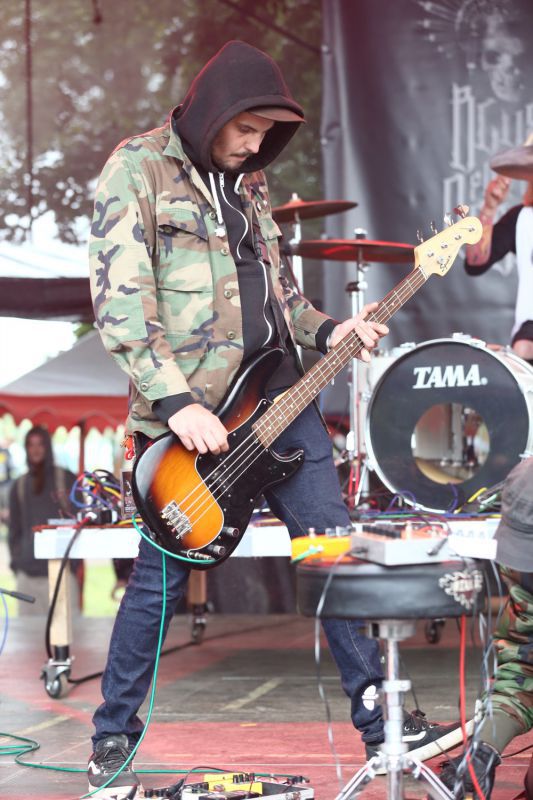 Záchodové štětky ve vzduchu, nějaké ty oblečky, pán s hovnem na hlavě a obrovský kotel pod pódiem. To byli GUTALAX, jejichž gore-grind slavil v Broďáku ohromný úspěch. Tentokrát vystoupili jen s jednou kytarou, ani to jim ale neubralo na intenzitě a celý areál se bavil. Nemusí to být vaše krevní skupina, přesto se přistihnete, jak si minimálně klepete a kývete do chytlavých rytmů. Navíc Matyho chropot, to je něco naprosto neskutečného… tím spíš, že si nepomáhá žádnými efekty. A jeho až poetické uvádění jednotlivých skladeb, které pak nesou třeba název „Polykání semena z postaršího jelena“, je dalším důvodem, proč GUTALAX prostě baví, i když nejste fanoušek gore-grindu.