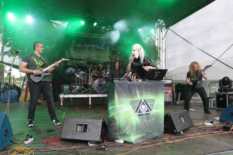 DEMIMONDE se po dlouhatánské pauze před pár lety vrátili k životu, vypustili skvělou druhou desku „Cygnus Oddyssey“ a od té doby jsou pořádně na očích. Zaslouženě, těžko tu naleznete podobnou kapelu. Kompozice vám mohou při nepozorném poslechu přijít až překombinované, ale vše má svoje místo. Takový materiál ale předvést naživo, aby neztrácel určitou kompaktnost, to je poměrně složitý oříšek. Nezbytný je k tomu samozřejmě dobrý zvuk, který se na CDF podařilo vykouzlit, a tak nic nebránilo užít si složité kompozice a vesmírnou atmosféru. (Jo, samozřejmě by setu prospěla tma, stejně jako třeba THE CORONA LANTERN, ale to by se muselo hrát od deseti večer do sedmi ráno - smích).) Jinak to ale DEMIMONDE šlapalo na jedničku a to včetně dvou hostů. Jako první se na pódiu objevil Mizzy (též VOLUPTAS), který pravděpodobně nahradí odcházejícího vokalistu De.polara. Jsem docela zvědavý, zda DEMIMONDE zůstanou u dosavadního projevu, neb důkladně maskovaný De.polar si vždy kromě hrubých vokálů hodně pohrál také s efektovým pultíkem, nebo budou mít vystoupení s Mizzym trochu civilnější podobu. Na závěrečnou „Dark Matter“ si DEMIMONDE přizvali Dahlien, jež skladbu hlasově obohatila též na zmiňované desce. Velmi dobré vystoupení, DEMIMONDE to i na festivalu sedlo.