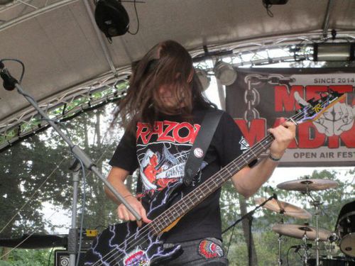 „Možná některé z vás mrzí, že hrajeme tak brzy...“ „Ano Zdento, mrzelo mě to, protože váš setík by si zasloužil daleko lepší čas.“ Nejvíce jsem se těšil právě na LAID TO WASTE. Banda z Plzně je snad jediná v Česku, která kromě thrashe hraje speed. Má za sebou dvě kladně přijaté desky a obzvlášť „Mental Decay“ je opravdovým klenotem, jaký u nás nemá obdoby. Nejsem si úplně jist, jestli někdo ten den hrál rychleji (smích). Bleskurychlá riffovačka typu obří pavouk jenž předvádí své nejlepší taneční kreace na kytarovém pražci, mě přikovala před pódium, od kterého jsem se už nehnul, takže jsem si nemohl zezadu poslechnout, jestli jsou zpěvy stejně utopené jako v předních liniích. (Kubina)