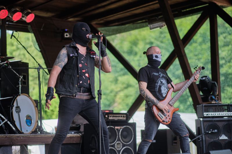 No nic, s nástupem srbských MURDER bylo vše zapomenuto. Tuto partu jsem už pár let naživo neviděl, ale nic se od té doby naštěstí nezměnilo. Pořád to byl ten stejný prašivý black/thrash metal, který vychází z klasických kapel 80. let. Temný thrash metal řezal i v ostrém slunci a já si pokyvoval hlavou do rytmu chytlavých riffů, kytarových vyhrávek i pasáží ve středních tempech. Frontman kapely Glad za celou show nesundal z hlavy černou kápi, za což v tom šíleném vedru zaslouží obdiv. (úsměv) Pokud se nepletu, zazněly všechny songy z jediného, pět let starého, EP „King of Tyranny“ plus něco navíc. Členové THE STONE, KOZELJNIK a dalšího milionu kapel byli v kooperaci s Honzou Kapákem jednou z nejlepších kapel sobotního dne. Žrádlo pro fans VENOM, WITCHBURNER, CRUEL FORCE a dalších klasik žánru. (Peťan)