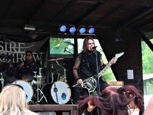 Silný večerní blok otevřel black metal odpadních vod STÍNY PLAMENŮ. Kdo byl překvapený, že našinci dostali tak pěkný hrací čas, rychle pochopil proč. Kapela disponuje patřičným charisma a hlavně silným materiálem – a je v podstatě úplně jedno, jaké skladby se hrají. Všechny jsou chytlavé, všechny fičí v rychlých tempech, ale zároveň se jimi proplétají chytlavé melodie (slyšte „Lesk mrtvých požárů“ třeba...). Morbivodovy texty jsou plné originálních příběhů, kapela na pódiu „nějak“ vypadá (nejen co se obutí týká – úsměv) a když k tomu sedne zvuk, je vystaráno. Není divu, že STÍNY měly pod pódiem mnohem hustější zástupy fanoušků než kapely hrající později. Ke konci bylo povoleno se zasmát u „Flexibilní stoky“, ostatně parodický zpěv k tomu sváděl hodně... (Johan)