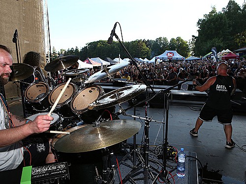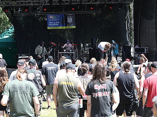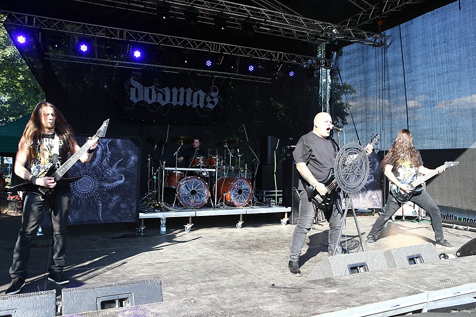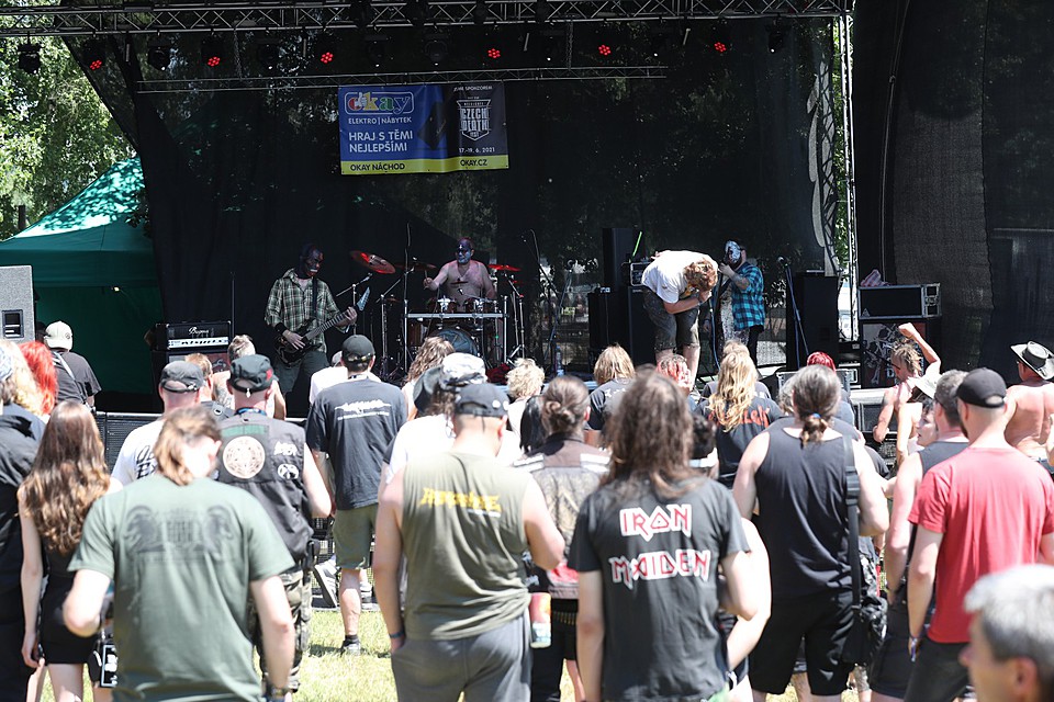 Zamýšlel jsem se, kdy jsem naposledy viděl další z legend, mladoboleslavský DEBUSTROL, a vyšlo mi, že už to je plných deset let, kdy za podobného počasí vystupovali na velkolepém Sonisphere jako jedna z kapel před IRON MAIDEN. A na rovinu říkám, že těch deset let jako by nebylo, nevím, jak to dělají, ale oni snad nestárnou. Nasazení od prvních do posledních tónů, mazácky vystavěný set, aby to správně gradovalo, hudebně na jedničku, Kollins podtrženou, nezbytná motorovka v „Masoterian“… Nemám nejmenších výtek, jeden z nejlepších setů na CDF.