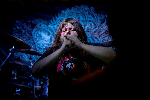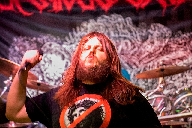 Po krátké pauze a vydechnutí usedá na bubenickou sesli opět Jürgen, tentokrát hájící krvavé barvy další nové kapely. SICK SINUS SYNDROME, jak určitě už všichni dobře ví, dále tvoří kytarista Bilos (MALIGNANT TUMOUR) a basák Hary (DOBYTČÍ MOR, ex-PATHOLOGIST), kteří se zároveň dělí o vokály. Relativně čerstvý debut „Rotten To The Core“ nabízí zajímavý staroškolský patologický grindcore, vycházející především, ale nejen, z klasik žánru jako CARCASS nebo REGURGITATE. Ovšem naživo to byl totální masakr. Grindcore a nic jiného než grindcore. Jak mi nadšeně řekl jeden kámoš, když jsme se potkali u pisoárů: „Pičo, to je jak starý CARCASS a NAPALM DEATH dohromady, ale ještě lepší!“ Takže těch třicet minut, během kterých zazněly i covery CARCASS či DEAD INFECTION, si určitě užili opravdu všichni.