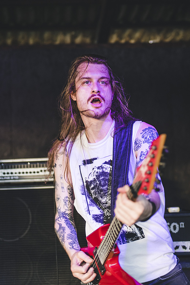 Na rozehřátí začali svůj krátký rychlý set SLAVERY. O kapele jsem věděl, ale crust a d-beat není vyloženě moje doména, takže akorát vim, že existujou dlouho, byť v bandě mají novou mladou krev. Set byl supr. Intenzivní nálož, kterou trošku kazil vokál, což mohlo být dáno technikou a nebo akustikou nebo obojím. Dost lidí bylo naštváno, že se nehrálo v klubu, všechny bandy to drtily venku v druhém „pódiu“. Zvuk SLAVERY byl ale dobře nasranej, žánru to sedělo. Jeden z věrných fanoušků, který byl rázně napit ještě před koncertem, dokonce během akce skákal slušný placáky a přemety z pódia do jediné louže, která před ním byla. Asi trošku ve víře, že si na nějakých dalších fanoušcích zaserfuje. No marně. Jiná celebrita severočeského black metalu a crusťák srdcem s mým tvrzením ohledně rozmného zvuku nástrojů teda moc nesouhlasil a k mému překvapení ho SLAVERY do extáze nepřivedli. Tímto zdravím Slávu. Jo, než jsem se rozkoukal a vytáhnul foťák, koncert skončil. Sorry…