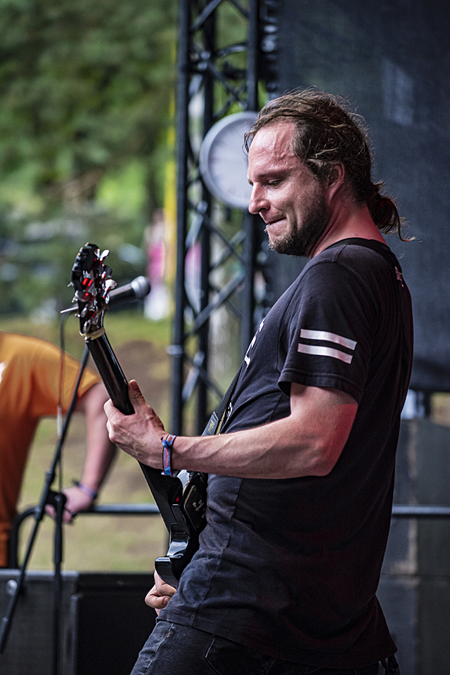 Dalšími Pražáky byli FAÜST (dříve COLDBLOODED FISH), kteří otočili kormidlem do thrashmetalových vod. Šlapavá a svižná muzika byla za mě OK. Ovšem pořádný fofr přišel s následujícími TRIGGER z Německa. Tohle trio (bubeník, basák a zpěvák) drtí pořádně hlučný a uvřískaný fastcore, kdy chvilky na vydechnutí nepřicházely mezi jednotlivými songy, ale pouze v občasných sludge pasážích. Moc pěkné! Tohle byl fakt mazec!