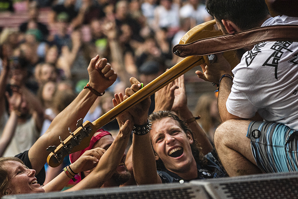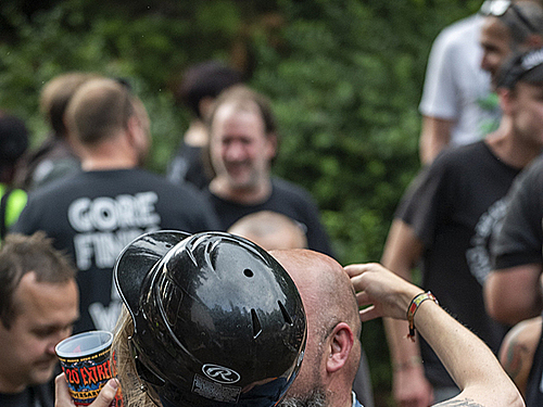 Do Trutnova jsme dorazili za deště něco po jedné hodině odpolední, ubytovali se v hostinci, neopomněli si dát nezbytné pivo Krakonoš 12° a nakoupili něco potravin na zahnání nočního hladu. Pak už stačil jen asi dvacetiminutový pochod do kopce a po vyřízení formalit vstoupit konečně zase do areálu místního amfiteátru. Oproti minulým ročníkům došlo k trochu jinačímu uspořádání stánků s občerstvením, kterých bylo o poznání méně, ale i tak byl výběr veganského nebo vegetariánského jídla bohatý. Bylo to dáno především tím, že letos se jednalo o jakousi menší verzi festivalu, kdy zahrály primárně kapely tuzemské a z okolních zemí.