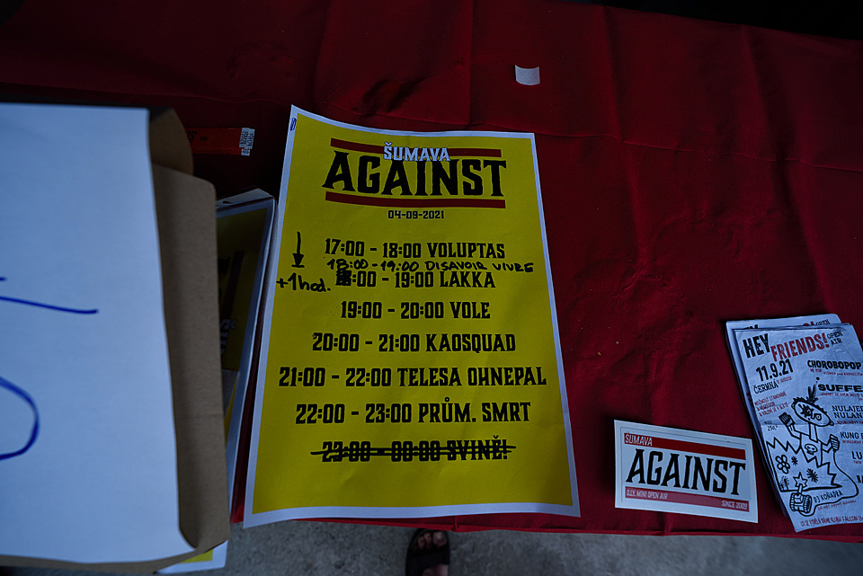 Zatímco v normálních časech jsme v Sušici a okolí festivalovou sezónu zahajovali i ukončovali, od loňska to jde z kopce. V roce 2018 jsme stihli Magick Musick Fest, Metal Madness a Šumavu Against, v roce 2019 MMF a MM, loni se prvně jmenovaný fest kvůli zatracenému čínskému mutantovi nekonal, Metal Madness jsme vynechali kvůli počasí, v němž bys psa nevyhnal, ale Šumáváci jej berou jako chladnější léto, a místo Against jsme s Coornelusem třepali hlavami v Praze na CULT OF FIRE, na které jsme měli půl roku lístky; jen Jindra s Berrym drželi šumavský praporec pevně v rukou. Letos si dal Magický fest druhý oddechový čas, na Madness byla opět zima jako na Sibiři, ale ohledně Against jsme měli jasno, že pokud nebude mrznout a sněžit, vyrazíme. Poprvé za třináct ročníků chyběl Berry, tím pádem i stánek s deskami, jediné malé distro vyložil Šakal (RABIES).