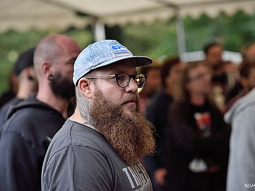 První partou, která zahrála ještě za tepla, byli pražští blackmetalisté VOLUPTAS. Loni jim vyšla deska, která se naneštěstí trefila do doby, kdy jí nebylo možnost představit naživo. Tak snad budou mít kluci k nápravě dost prostoru letos. Jejich zajímavě pojatý černý kov kupodivu vyzněl dobře i v pět odpoledne. Navzdory světlu kapela neztratila kouzlo a psychedelií a rockovými postupy načichlý metal, i díky kvalitnímu zvuku, potěšil. Vypíchnout musím zdařilý vokál a citlivě pojaté noise ruchy, kterých bylo tak akorát. Příjemné překvapení na začátek.