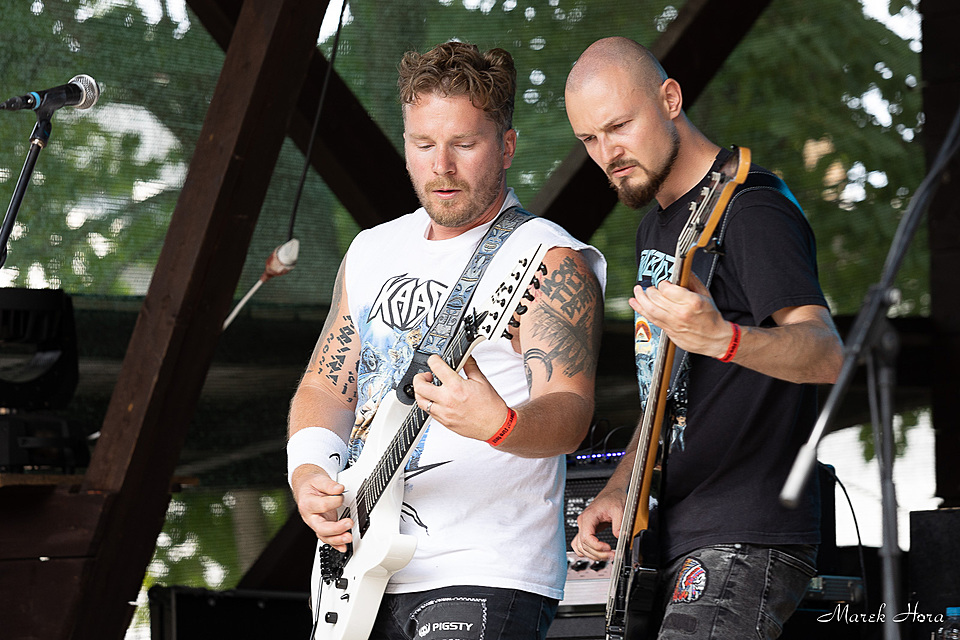 Druhý festivalový den začínal pěkně zostra. Ihned po obědě to rozbalili (nejen) berounští thrasheři MURDER INC. Kapela v nedávné době okysličila sestavu a výsledkem je zbrusu nové EP „Sám sobě soudcem“, které jsem zatím slyšel jen z rychlíku. Kluci sáhli po nových skladbách, ale vysázeli i starší tvorbu. Na závěr pak vystřihli dobře pojatý cover LAHAR – „Krev“ (je to jen můj pocit, že kluci opouští ten svůj thrash s blackovým vokálem a jdou cestou thrashe, kde vládne spíš řev?), ale abych řekl pravdu, dal bych si spíš další vlastní track. Celkově nadupaný koncert s trochu tiššími bicími (Ondro, mlať do toho víc, haha) a kvalitní ukázka tuzemského thrashingu.