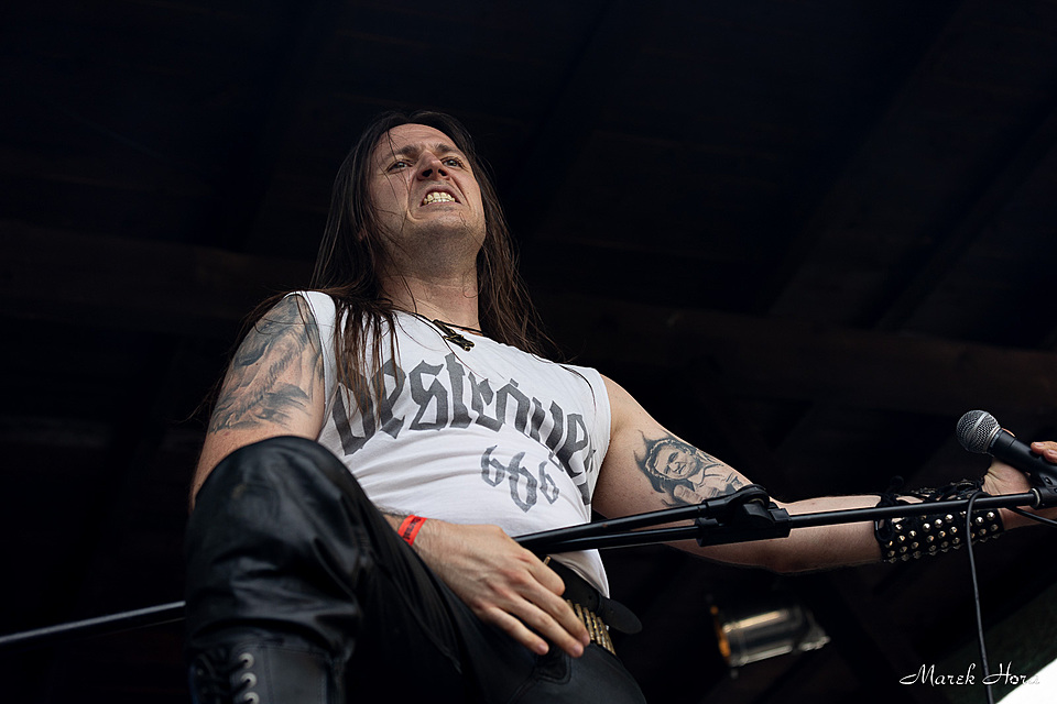 Sobotu otevřeli berounští thrasheři MURDER INC., kteří podle mě v žánru patří k tomu nejlepšímu v české kotlině. I v pravé poledne má jejich show správné grády a energii, chlapci se s tim neserou, sypou to tam bez přestávek a navíc jsou to výborní muzikanti. Docela mě překvapilo množství nasypaných nablacklých pasáží, s obnovou sestavy a s čerstvým sypačem Ondrou za bicími se MURDER INC., zdá se, posunuli dál a jedině správným směrem. Občas mám u thrashovek problém s vokálem, u této čtveřice mi ale sedí i ten, takže za mě super rozjezd programu druhého dne.