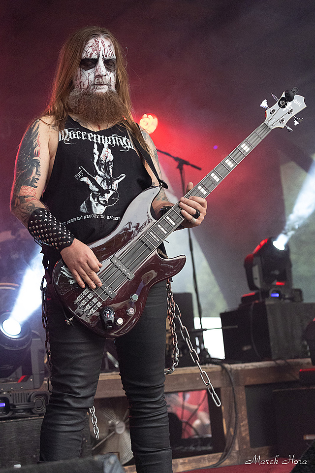 Jestliže v pátek se mezi samými black, death a thrash spolky objevila jediná kapela, která dění žánrově zpestřila, sobota byla v tomto směru bohatší. Jako první se vymykali WAR FOR WAR, kteří kombinují black metal s techno rytmy i industriálními prvky a mužský drsný vokál s ženským sopránem. Morbivoda a Lenku doplnili (jako obvykle) muzikanti z dalších Morbivodových kapel či projektů a mně se živé provedení líbilo. Chápu různé výhrady „kolemjdoucích“, sám nějaké mám, ale nikoliv ke koncertu, nýbrž k albu „In Situ“. Z toho naštěstí zazněly dva nejlepší kusy, pak už se hrálo z mnou oblíbených alb „Machina Nova“ a „Illud Tempus“ a hlavně „Zajištěná cesta“ a „V těžní kleci květ“ mi udělaly radost.