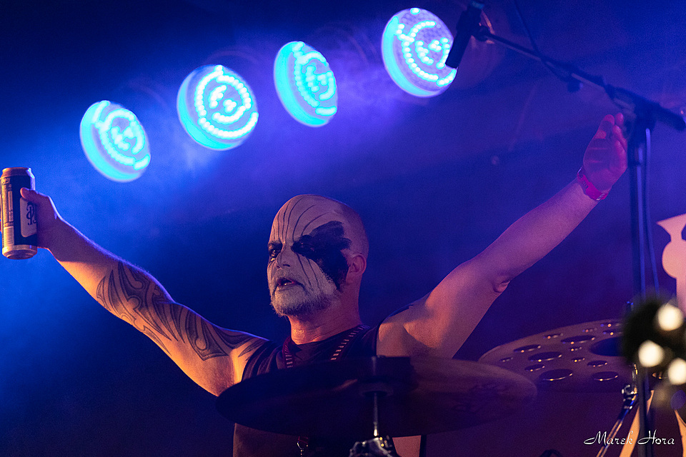 HYPNOS je sázka na jistotu, na precizní výkony a taky spoustu propriet, které dotvářejí koncert, ať už jde o vyvíječe mlhy, ventilátory nebo velké bannery. Na jednu stranu nám to přijde jako zdržování, myslím z pohledu, co všechno se musí na pódiu nachystat, na druhou pak koncert „nějak“ vypadá, přičemž uvozovky kolem nějak nemyslím jako negaci, ale jako zdůraznění toho, že i vizuálně jde o promyšlenou záležitost. HYPNOS logicky sáhli k několika starším kusům, z nichž „In Blood We Trust“ prostě zaznít musí, ale zahráli i songy z obou „Vran“, tudíž i zpomalili, a jako vždycky sklidili zasloužený potlesk.