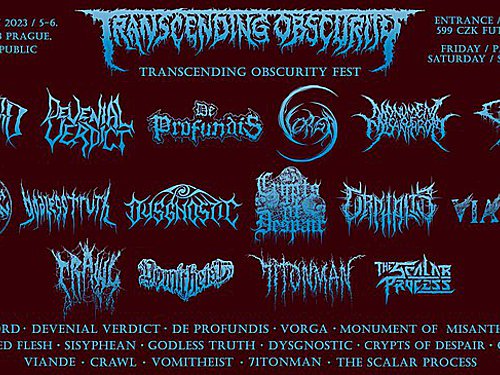 Již za pár dní, 5. a 6. května 2023, proběhne v pražském klubu Futurum první mezinárodní TRANSCENDING OBSCURITY Fest. Tato akce, jíž název propůjčuje známý undergroundový label z Indie, je výjimečná tím, že se na ní během dvou dnů představí šestnáct primárně death a blackmetalových kapel celkem z dvanácti (!) zemí Evropy. Co do mezinárodního zastoupení rozhodně nevídaná událost nejen na území Prahy, navíc s takto zajímavě namíchanou a exkluzivní sestavou.