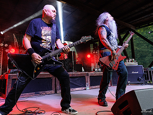 MASTER se prezentoval naprosto špičkovým výkonem. Ač s jednou kytarou, zvuk měli naprosto zabijácký. Jejich přímočarý old school death metal s lehkou příměsí thrashe zválcoval přítomné a po koncertu jsem slyšel jen slova nadšení, že takhle se to má dělat a takhle to funguje. A předpokládám, že čtenáře zajímají i nějaké zákulisní střípky, tak si tady dovolím uvést, že nejsympatičtějším muzikantem festivalu pro mě byl bijec Peter Bjači, který sršel pozitivní náladou, za všechno děkoval, nad přineseným jídlem kroutil hlavou, že to nemohou sníst... Ne, že bych za dva dny narazil v backstage na nějakého vyloženého idiota, jako se tomu v minulosti stalo, letos to v tomto směru byl v naprosté pohodě a v příjemné atmosféře, ale Peter tomu kraloval. (Johan)
