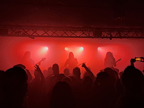 Zhruba 25 minut pauza, což znamenalo úprk z klubu na jednu točenou plzeň do vedlejší Pilsnerky. Budvar prostě ne, proč proboha… Vyšlo to tak akorát, jedna dvanáctička a zpět do Rock Café na vrchol večera. DER WEG EINER FREIHEIT jsem viděl naživo naposled v roce 2019, tehdy ve Futuru odehráli celý debut, který přeci jen kvalitativně trochu zaostává za některými následnými deskami. Co si pamatuji, nejvíc mě rozsekali v roce 2014 na Phantoms of Pilsen. Zhruba před týdnem se vytasili s novinkou, které jsem stihl dát zběžné poslechy, a přestože už ubrali na jakési agresivitě známé například z „Unstille“ (2012), sílu pořád mají.