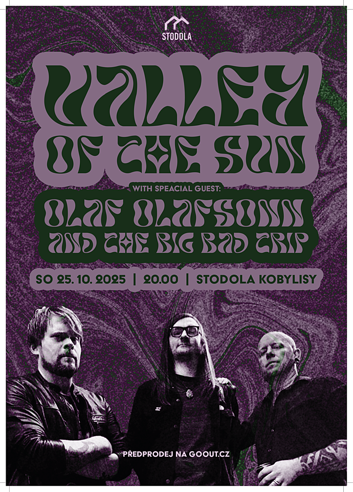 V sobotu 25. října 2025 od 19:00 se pražská Stodola Kobylisy stane dějištěm jedinečného zážitku, kdy se na českých pódiích poprvé představí americká stoner-grunge kapela Valley of the Sun a společnost jim bude dělat český projekt Olaf Olafsonn & The Big Bad Trip.