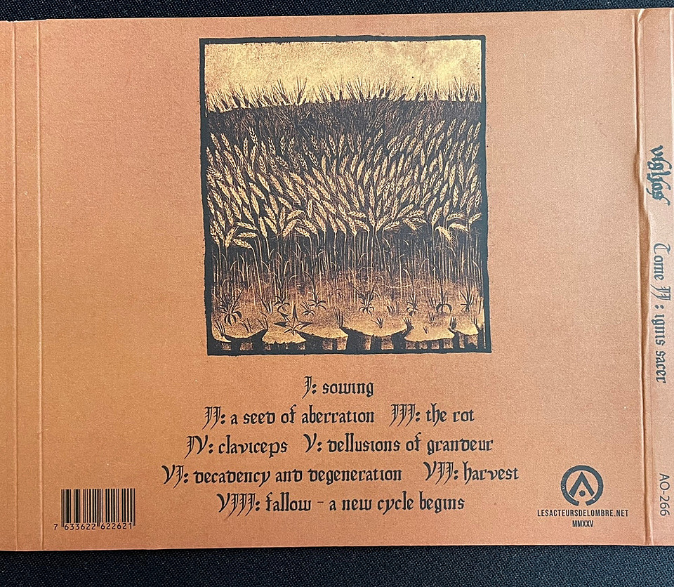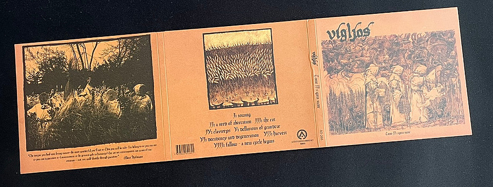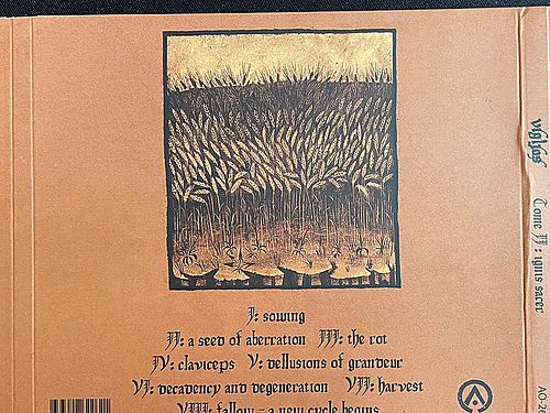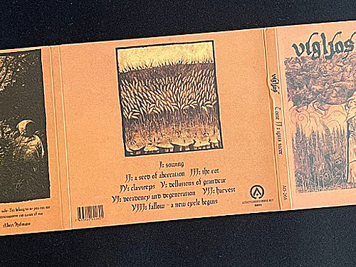Elektromechanický polyfonní klávesový nástroj mellotron v úvodní „Sowing“ připravuje půdu pro „A Seed of Aberration“ coby rozzlobeného výpadu dřevního black metalu. Znepokojivá a v temnotě zachumlaná „The Rot“, plná nepříčetných výkřiků, předznamenává věci, které mají přijít. Od začátku „Claviceps“ potvrzuje, že VÍGLJOS mají kořeny ve druhé vlně norského BM usměrňovaného expresivním syntezátorem. Nejdelší skladba „Delusions of Grandeur“ se potácí na hraně rock´n´rollových riffů a tremolo záchvatů nořících se do nitra apatie, kterou utváří spíše než blackmetalové výkřiky halucinogenní vokál. Degradované disonantní riffy, které třímají nálepku „nahráno v hlubokém suterénu“, se syrovými, nervy drásajícími tóny a hrdelními výkřiky jsou podstatou „Decadency and Degeneration“. Pro mě nejvíce vyčnívá skladba „Harvest“, sloužící třeba jako lidový žalozpěv o mrzké úrodě, která je bohatá na mellotronové harmonie. Líbí se mi kytary, které přinášejí chytlavé a emotivní linky. Při troše představivosti skladba, obzvláště její závěr s krajinnými zvuky, dokonale koresponduje s v okrových barvách vyvedeným obalem od Adriana Smithe a layoutem Lucy Piazzalongy. Logicky se nabízející polyfonní outro „Fallow – A New Cycle Begins“ jen potvrzuje, že albu ve středověkém duchu bylo učiněno zadost.