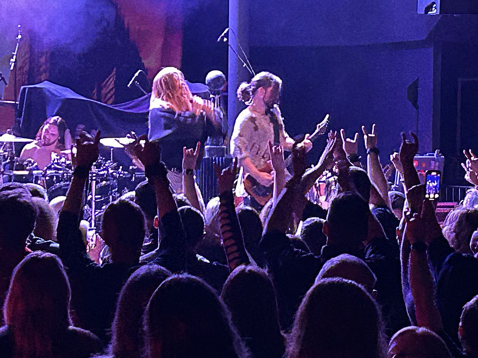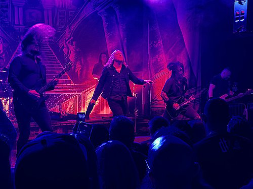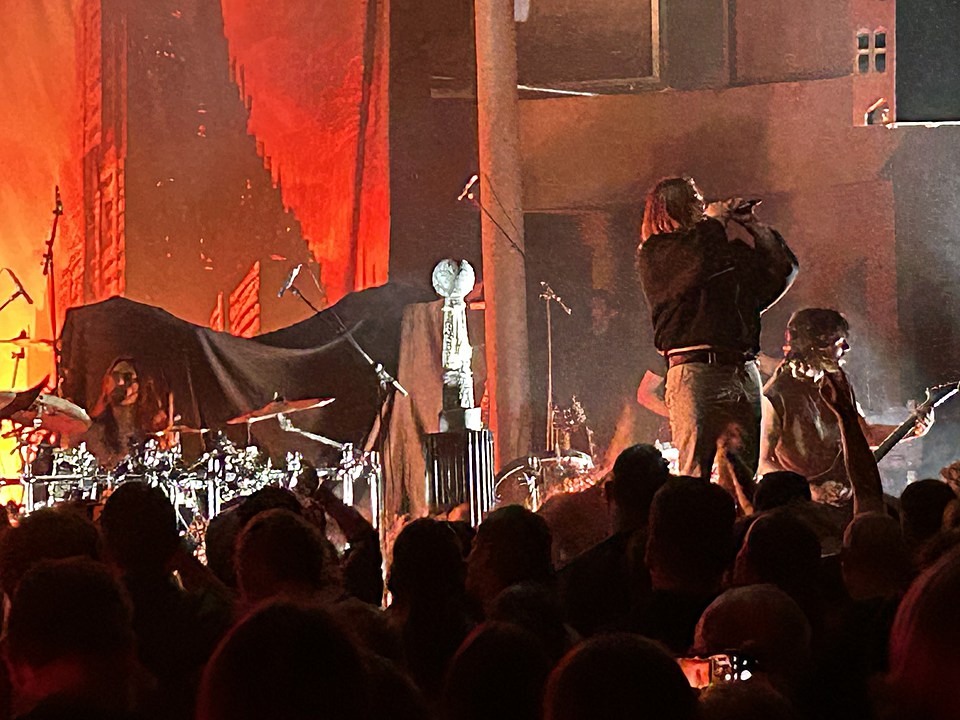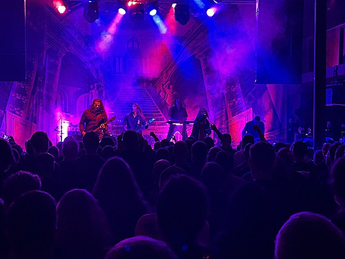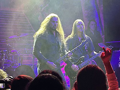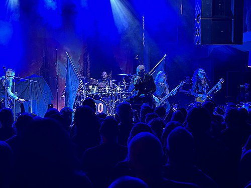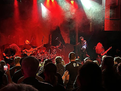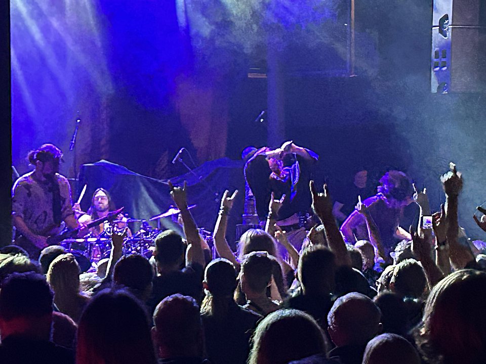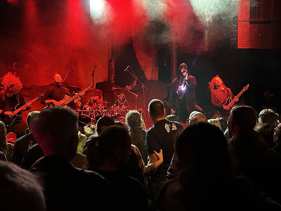 Úvod obstarali dánští IOTUNN. Poměrně mladá kapela, která má za sebou dvě desky „Access All Words“ (2021) a „Kinship“ (2024) a je upsána pod labelem Metal Blade. Jejich set trval kolem třiceti minut, kdy se stihli drobně představit. Nicméně jako předskokani doplatili hlavně na nekvalitní zvuk. Trochu to připomínalo zvukovou kouli, kde nazvučené byly dobře jen bicí, ale vše ostatní se slévalo v jeden málo čitelný celek. Přitom má kapela co ukázat. Jak bych jen IOTUNN popsal? Určitě jako melodický progresivní metal s převážně čistým a naléhavým vokálem. Zpěvák Jón Aldará dokázal, že je kvalitním frontmanem. Nicméně jeho zpěv mizel v hluku zmiňované koule. Nutno zmínit, že po celou dobu vystoupení měl zajímavou image – kápí zakrytou hlavu. Technicky kluci hráli jako celek skvěle, ale publikum nedostali do varu. Možná i proto, že je to spíše poslechová muzika než „pařící“. Rozhodně ale doporučuji poslechnout si jejich zatím druhou desku „Kinshop“.