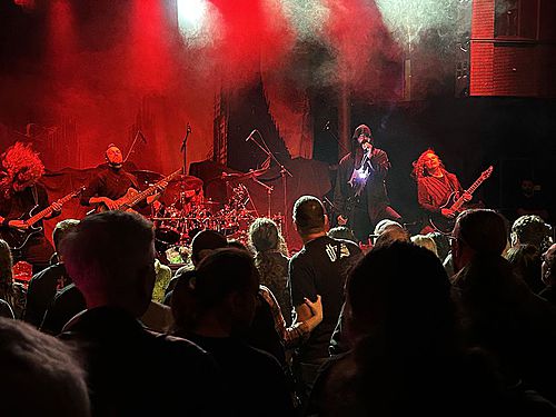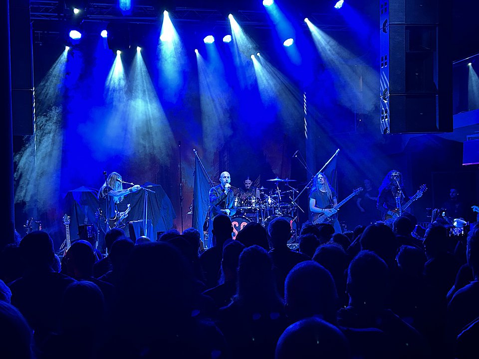Švédové DARK TRANQUILLITY patří do trojky kapel spolu s AT THE GATES a IN FLAMES, které daly žánru melodický death metal (nebo chcete-li göteborský melodický death metal) jméno. Čekal bych tedy vyšší návštěvnost tohoto koncertu, než mnou odhadovaných cca 300 hlav. Ale jasně, chápu, akcí je hodně a člověk si musí vybírat i podle své peněženky. Stejně tak jako vlítli na pódium EQUILIBRIUM, tak na scénu vběhli i DARK TRANQUILLITY. A je jedno, že mají historii, která sahá až do roku 1989 (tedy 36 let!). Byly to výkony mladíků, i když se sestava kapely od počátku jejich kariéry mnohokráte proměnila. Hlavně v posledních letech. Nejvíce mne ohromil bubeník Joakim Strandberg Nilsson, který hrál jako o život a nepolevil v šíleném tempu celé vystoupení. To bych rozdělil do dvou hudebních bloků. První část vystoupení kapela totiž věnovala starým skladbám z alb „Gallery“ (1995) a „Character“ (2005) a slavila tak třicetileté (resp. dvacetileté) výročí vydaní svých alb. A jejich deathmetalový náboj byl znát i po letech a songy rozhodně neztratily ze své aktuálnosti. Všechny byly totiž v tak brutálním tempu, že jsem si říkal, kdo z muzikantů chce být už na konci skladby… Druhá polovina byla pak sestavena z novějších, řekněme melodičtějších skladeb, kde melodickou linku tvoří především klávesy. Překvapením bylo, že z novinkového alba „Endtime Signals“, které kapela propaguje, zazněly pouze dvě skladby, a to „Not Nothing“ a „Unforgivable“. Frontman Mikael Stanne skvěle komunikoval s publikem, bylo vidět, že si to celá kapela užívá, její nasazení bylo naprosto fenomenální. Na to, že se už moc na koncertech neodvážu a spíše více poslouchám a vnitřně si muziku užívám, tady jsem mlátil hlavou hlava nehlava… Moc se mi líbilo, že kapela přistupovala k vystoupení s respektem a pokorou vůči fanouškům, bylo vidět, že jsou rádi za každý potlesk či projevenou radost. Fanoušci tohle mají rádi a kvitovali to s povděkem.