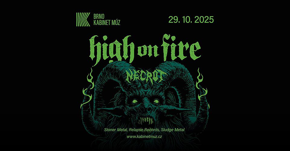 Ve středu 29. 10. 2025 v Brně High On Fire doprovodí americká death metalová kapela Necrot, kteří v minulosti koncertovali po boku Cannibal Corpse, Morbid Angel či Immolation. Svým aktuálním albem Lifeless Birth stvrzují pozici špičky současného amerického extrémního metalu. Necrot posouvají hranice staré školy death metalu k větší otevřenosti, ovšem bez ztráty brutality.