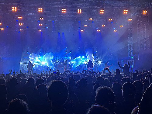 Kde se vzalo to nepsané pravidlo o tom, že předkapely musí mít horší zvuk než hlavní hvězda večera? Už GATECREEPER měli nejhorší zvuk z celé čtveřice, stejně tak následující AMORPHIS neměli zvuk o mnoho lepší. Kupodivu bicí byly u všech kapel nazvučené podobně – celkem slušně, ze všech nástrojů byly vždy nejlépe slyšet. Ostatní nástroje byly v úvodu setů utopené v jedné zvukové kouli. Představte si, jako by kapela hrála za rohem nebo že mezi vámi a kapelou bylo průhledné sklo o síle cca půl centimetru. Teprve až po třetí skladbě AMORPHIS se zvuk hodně zlepšil, haproval akorát zvuk u kláves, který vždy ze začátku jejich partů nebyl slyšet a pak „naběhl“. Možná je pak lepší, když nemáte hudbu tak naposlouchanou jako já. Já se snažím najít vždycky všechny jemné nuance a tóny, ale živé hraní je prostě trošku jinde, občas jsou tu jiné aranže. Pochopitelně. AMORPHIS jsem myslím během těch třiceti čtyř let viděl minimálně potřetí a opět se mi líbili, ne tak jako při jejich samotném koncertu v Helsinkách, ale i tady na velkém pódiu. Sice byla kapela statičtější než GATECREEPER, nicméně si to jejich hudba v klidnějších partech možná i vyžadovala. Nejvíce „pohyblivý“ byl nakonec zpěvák Tomi Joutsen. Navíc zpíval jako o život. Prostě tomu bych dal dneska jedničku s hvězdičkou, celé kapele pak dvojku. AMORPHIS zahráli dvě novinkové skladby „Bones“ a „Dancing Shadow“ a pak jakýsi menší průřez jejich tvorbou za posledních dvacet let. Kvitoval jsem návrat ke skladbě „Black Winter Day“ z „Tales From The Thousand Lakes“ z roku 1994, desky, která je dnes jedním z klenotů devadesátých let. A byla jedinou dnes zaznivší skladbou této dekády. AMORPHIS se mi líbili asi nejvíc z celé čtveřice, protože stojí na mém žebříčku výše než hlavní hvězdy ARCH ENEMY. Asi dvakrát se mi stalo, že jsem se zaposlouchal opravdu do hloubky a začal mi běhat mráz po zádech. A tak by to mělo být…
