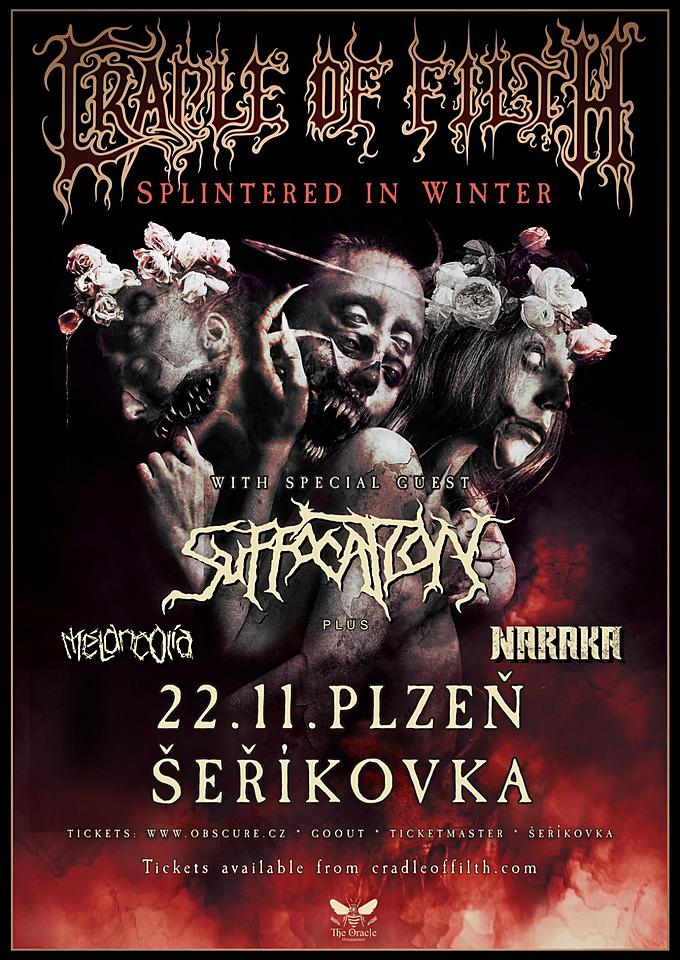 Britská ikona temného metalu Cradle of Filth se v listopadu vrátí do České Republiky, konkrétně do plzeňského klubu Šeříkovka. Pokud máte spojení extrémního metalu, gotické estetiky a teatrální show, tento koncert vás nemůže minout! Jako speciální hosté vystoupí americká metalová legenda Suffocation.
