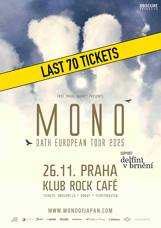 Japonský instrumentální rockový kvartet MONO slaví 25 let a vyráží na turné! Jejich hudba překračuje žánrové hranice – mísí orchestrální aranže se shoegaze kytarami, vrstvenou dynamikou a filmovou atmosférou. Každý koncert MONO je podmanivým, emotivním příběhem beze slov, který vtáhne a nepustí.