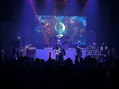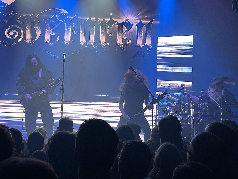Oproti relativním nováčkům KLOGR jsou Švédové EVERGREY letitou kapelou, která má už něco za sebou. Její kořeny sahají až na počátek devadesátých let. EVERGREY propagují na tomto turné svou poslední, čtrnáctou desku „Theories of Emptiness“ z roku 2024. Přiznám se, že EVERGREY jsem předtím nesledoval a jejich bohatou tvorbu neznal. Proto jsem se na počátku jejich vystoupení trochu ztrácel a nějak jsem nemohl pochopit styl, který produkují. Přitom přítomné osazenstvo reagovalo na jejich vystoupení už od prvního tónu a samozřejmě velmi vřele a pozitivně. Teprve po nějakých třech čtyřech skladbách jsem se trošku chytil a začal se lehce hýbat do rytmu. Ano, cítíte správně, nějak jsem s EVERGREY celkově nesouzněl a nepřirostli mi moc k srdci. Zkusím vysvětlit proč. Jejich hudba je totiž postavena na šlapavé rytmice a řekněme jednodušších kytarových partech, které jsou hodně podladěné, a dále na čistém uhrančivém zpěvu Toma S. Englunda, který často přechází do snadno zapamatovatelných chorálů, které si v podstatě vzápětí mohou fanoušci zpívat s kapelou. A právě tohle je možná laciná stavba, která mně osobně nevyhovuje, ale rozumím jiným jejich obdivovatelům. Zatěžkaná chytlavá rytmika, jednoduché melodie, náladové songy, naléhavý zpěv. To jsou znaky EVERGRAY. Jisté kvality kapela má. Líbí se mi propojení progresivního metalu s tímto typem zpěvu. Rozhodně mají kluci svůj ksicht, ale možná ta jednoduchost je pozicovala do nižší třídy metalové ligy. Na tu první zřejmě zatím nemají.