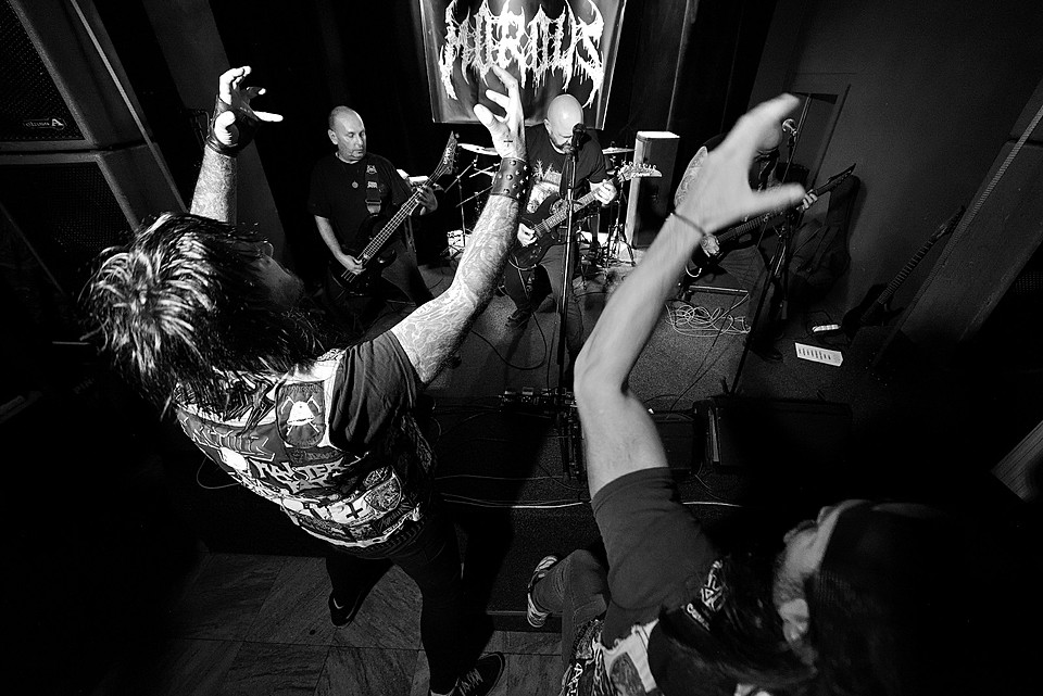 MOROUS pomalu ale jistě zařazuji do množiny kapel jako LAHAR, KAOSQUAD nebo BOHEMYST v tom smyslu, že díky jejich perimetru vystupování je mám možnost vidět řekněme 2–3x za rok. Tím pádem mohou vyvstat otázky typu „co napsat nového o „MOROUSOVI“? To, že ikonický pedál HM-2 Heavy Metal má stále své pevné místo v pedalboardové sestavě, není žádná novinka. Tedy na vzývání oldschool death metalu severské provenience se pranic nemění. Novinkou možná pro někoho bude doplnění sestavy o basové frekvence. Na postu baskytaristy se objevil Rámus (BOHEMYST, ex-MASTER'S HAMMER ad.). Spolu s bubeníkem Alešem tak vytvořili mazáckou rytmickou složku, ze které může kapela pouze profitovat. Sporadická kytarová sóla získávají v podání MOROUS na jistotě stejně jako střídačka vokálů mezi kytaristy Žroutem a Mírou. V písecké Podčáře se teď už kvartet vskutku vyšvihl a nalil do posluchačů songy převážně ze zářijového eponymního debutu.