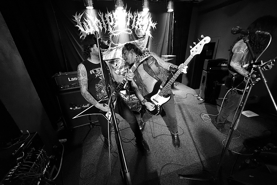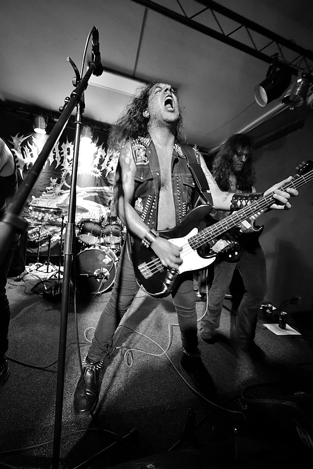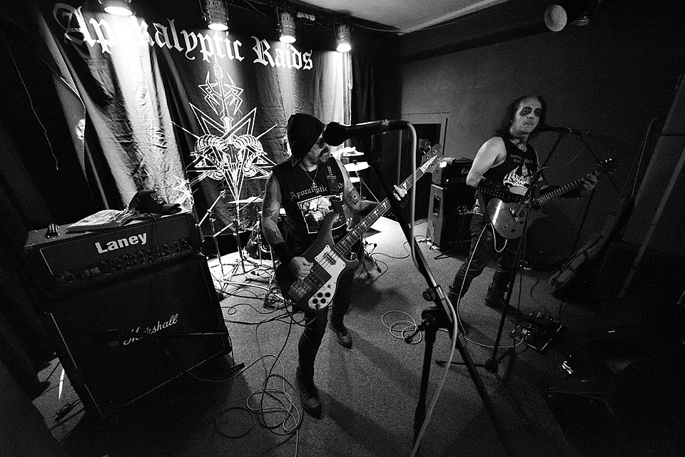 Druzí Brazilci APOKALYPTIC RAIDS (rovněž potřetí na místě činu) mi tak zajímaví nepřišli. Muzika byla o poznání jednodušší, „dřevnatější“ a hlavně zvukově zmršená. Nevím, jestli to tak tři draci chtěli, ale mě se to netrefovalo do uší. Proč? Protože baskytara. Ta totiž úplně přebíjela kytaru, která byla slyšet jen s jistou dávkou fantazie. Druhou potíží byly bicí – ne že by nebyly slyšet, ale ta jejich monotónnost. To byla tupost, nikoliv kreativita. Když jsem tyhle neduhy hodil na váhu, nemohlo je převážit to ostatní, což byl snad ještě starší metal než v případě jejich krajanů, navíc zúžený na dejme tomu tribute HELLHAMMER. Ne, že by to bylo úplně marné, cca dvacet minut jsem si poslechl s chutí, ale poté už se mi to začalo slévat a přišlo mi, že se kapela opakuje.
