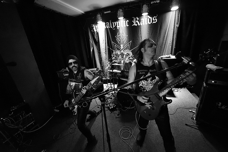 Jelikož APOKALYPTIC RAIDS mají společného bubeníka s WHIPSTRIKER, zůstává backline včetně bicích na svém místě. Nemusíte kapelu vidět, abyste věděli, odkud vane jejich dominantní inspirace. V úctě k VENOM či HELLHAMMER spustili metalovou sambu na vlně nostalgie. Sloka-refrén-přechod, nic příliš složitého, v dobrém smyslu slova ještě primitivnější než jejich kolegové. Některé repetitivní kytarové části, kde Necromaniac a spol. mísili několik oblastí extrémního metalu, se stávaly po delším poslechu poněkud monotónní a mohly vyvolat zívání. Úplný závěr setu protlacháme s kamarády v prostoru, kde už si nemusíme prskat do ucha a tvářit se, že to je naprosto jasný. Oba brazilské spolky jsou jedny z mnoha kapel z Jižní Ameriky, které se nesnaží o nic převratného, ale díky své vášni a posedlosti metalem znějí věrohodně a bez přehnaného sentimentu.