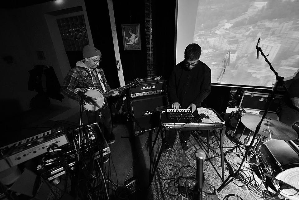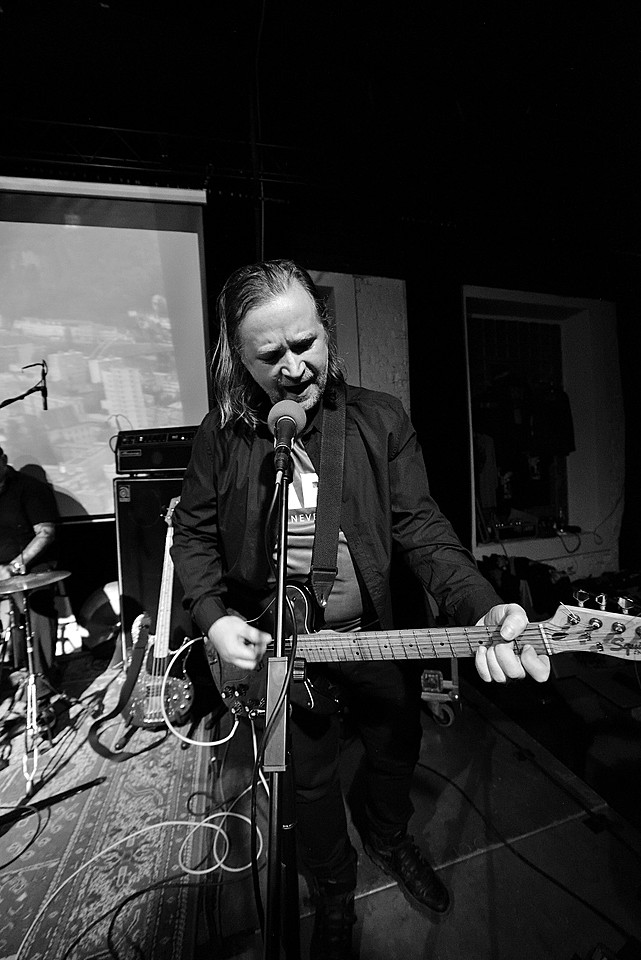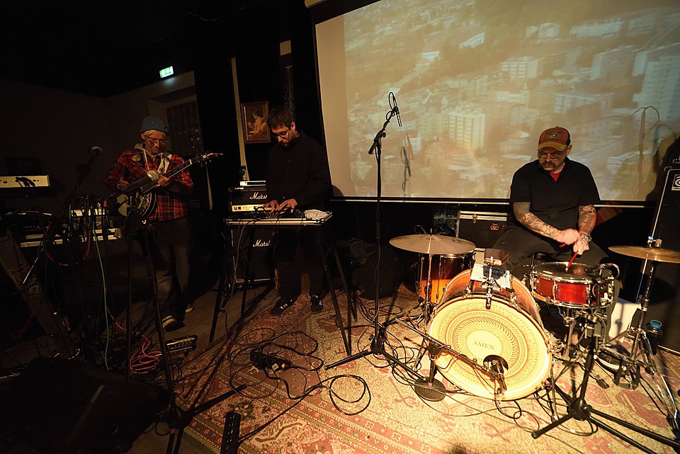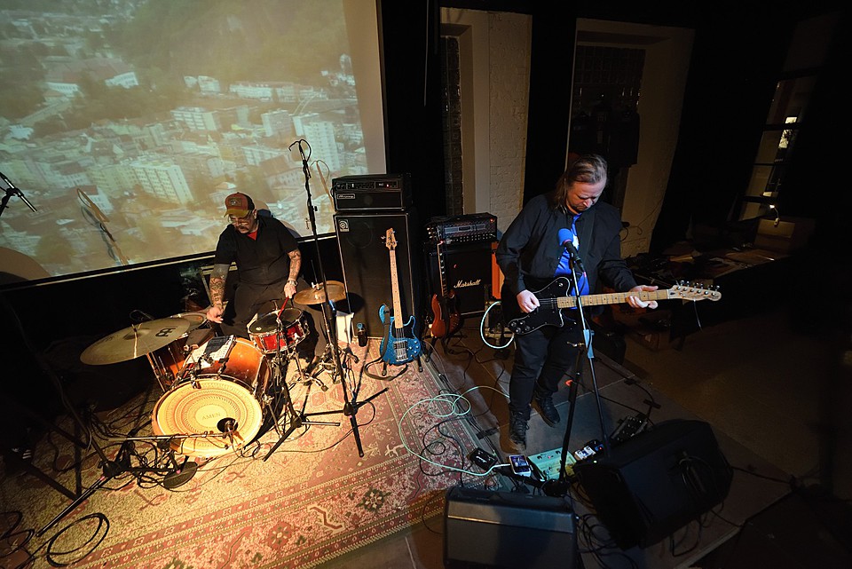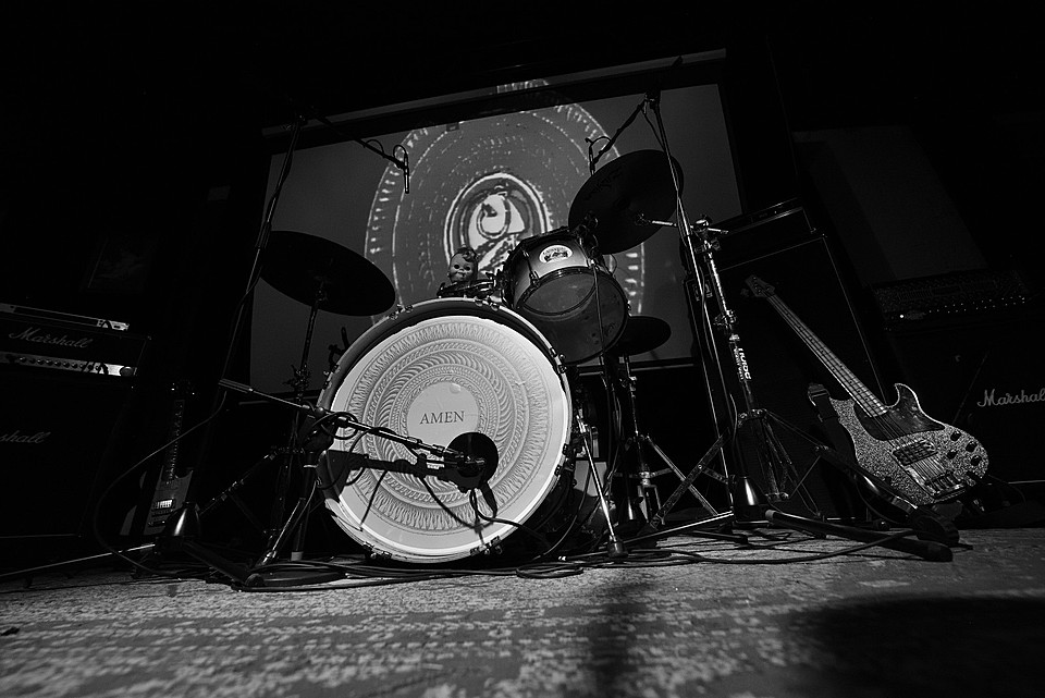 Stejně jako začíná poslední deska, v pořadí šestá, „Amen“ skladbou „XXVI“, začal také gig LVMEN. Bylo tedy jasné, že hned prvních deset minut bude mít nezkrotnou atmosféru adekvátní kapele, která živými vystoupení příliš neplýtvá a v UG prostředí si vydobyla postavení kultu. Napínavé prolínání nálad vygradované hradbami post-HC/metalových stěn a zvukových psychedelií umocňovaly smyčky zapadlých klenotů domácí kinematografie, např. z historické balady Františka Vláčila Marketa Lazarová s tehdy ještě mladičkou Magdou Vašáryovou. Nebo roj středověkých poustevníků plahočících se na vrchol poutního kopce. Očekávat od LVMEN zpěv je stejně naivní jako čekat od politiků slušnost. Když už na nějaký ten verbální projev, resp. řev došlo, podělili se o něj baskytarista František Klimt (aka Franta Ikebara), kytarista se srdcem emaře Tomis a klávesista Petr Proft (aka Hvsar). Krom toho Hvsar nahazuje různé loopy hluků, ruchů a pazvuků z iPhonu. Mimochodem dnes již jediný člen zakládající sestavy s právem veta. Dle zvyklosti LVMEN odehráli celý set bez jakéhokoli proslovu nebo nedej satan agitace. S přehledem. Kytarový hluk LVMEN na hony vzdálený od nevkusné korporátní kultury bych si uměl představit jako živý bezezpěvný doprovod němých filmů, jako to svého času dělali POVODÍ OHŘE. (Jindra)