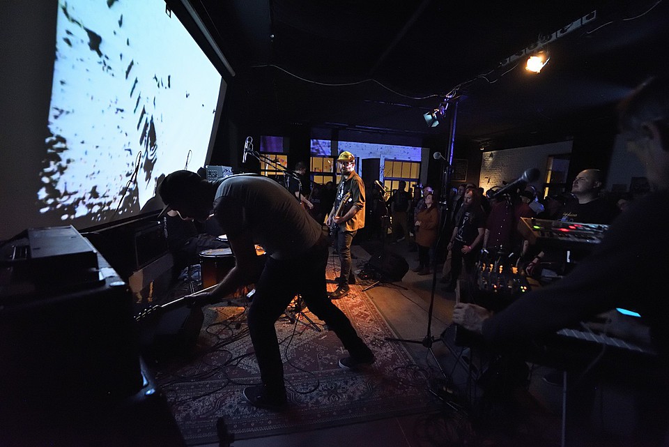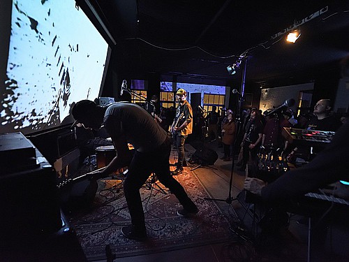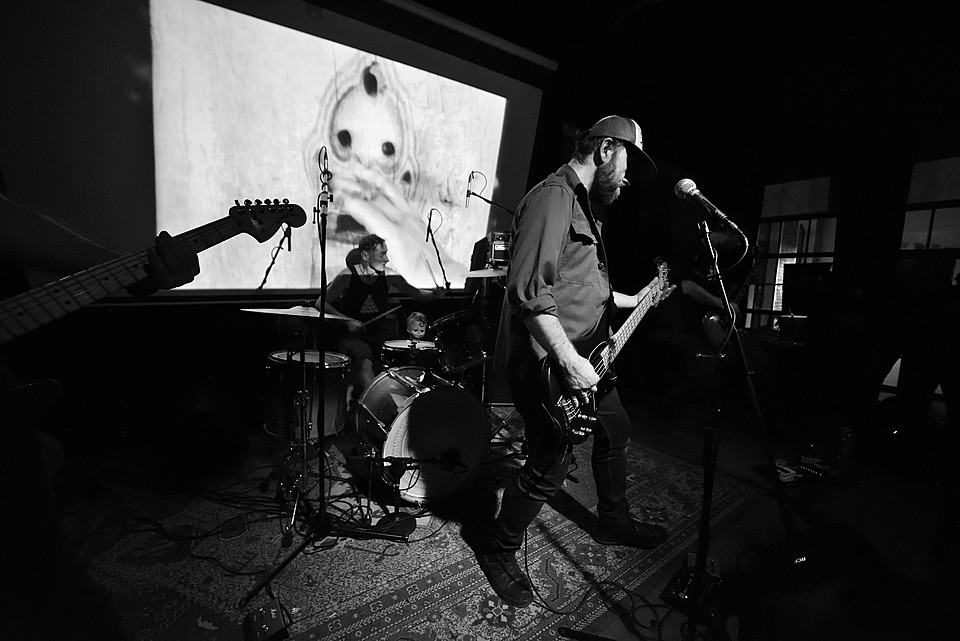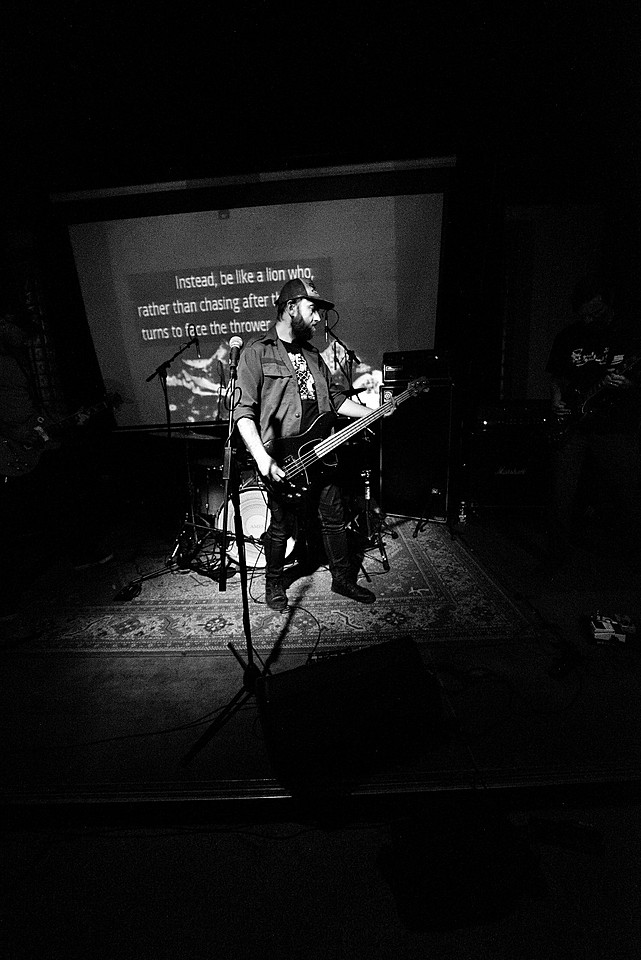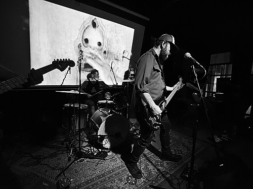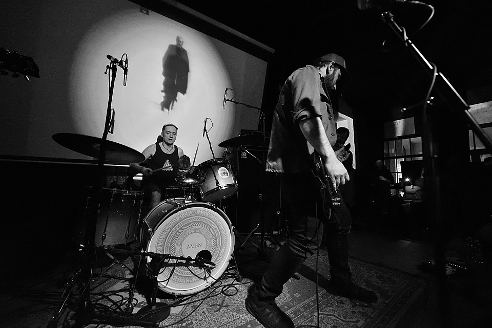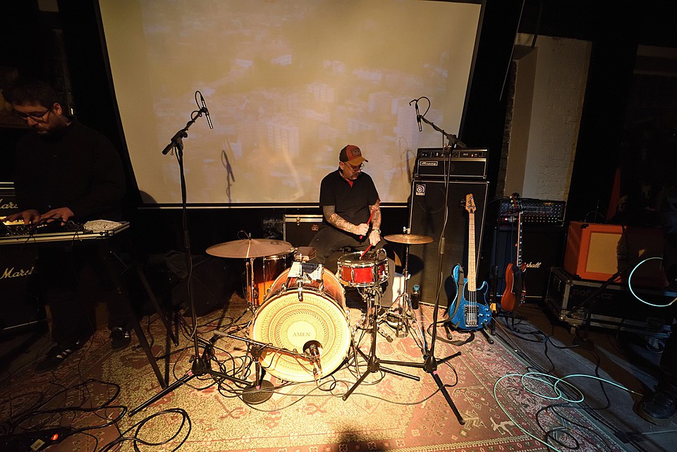 Stejně jako začíná poslední deska, v pořadí šestá, „Amen“ skladbou „XXVI“, začal také gig LVMEN. Bylo tedy jasné, že hned prvních deset minut bude mít nezkrotnou atmosféru adekvátní kapele, která živými vystoupení příliš neplýtvá a v UG prostředí si vydobyla postavení kultu. Napínavé prolínání nálad vygradované hradbami post-HC/metalových stěn a zvukových psychedelií umocňovaly smyčky zapadlých klenotů domácí kinematografie, např. z historické balady Františka Vláčila Marketa Lazarová s tehdy ještě mladičkou Magdou Vašáryovou. Nebo roj středověkých poustevníků plahočících se na vrchol poutního kopce. Očekávat od LVMEN zpěv je stejně naivní jako čekat od politiků slušnost. Když už na nějaký ten verbální projev, resp. řev došlo, podělili se o něj baskytarista František Klimt (aka Franta Ikebara), kytarista se srdcem emaře Tomis a klávesista Petr Proft (aka Hvsar). Krom toho Hvsar nahazuje různé loopy hluků, ruchů a pazvuků z iPhonu. Mimochodem dnes již jediný člen zakládající sestavy s právem veta. Dle zvyklosti LVMEN odehráli celý set bez jakéhokoli proslovu nebo nedej satan agitace. S přehledem. Kytarový hluk LVMEN na hony vzdálený od nevkusné korporátní kultury bych si uměl představit jako živý bezezpěvný doprovod němých filmů, jako to svého času dělali POVODÍ OHŘE. (Jindra)