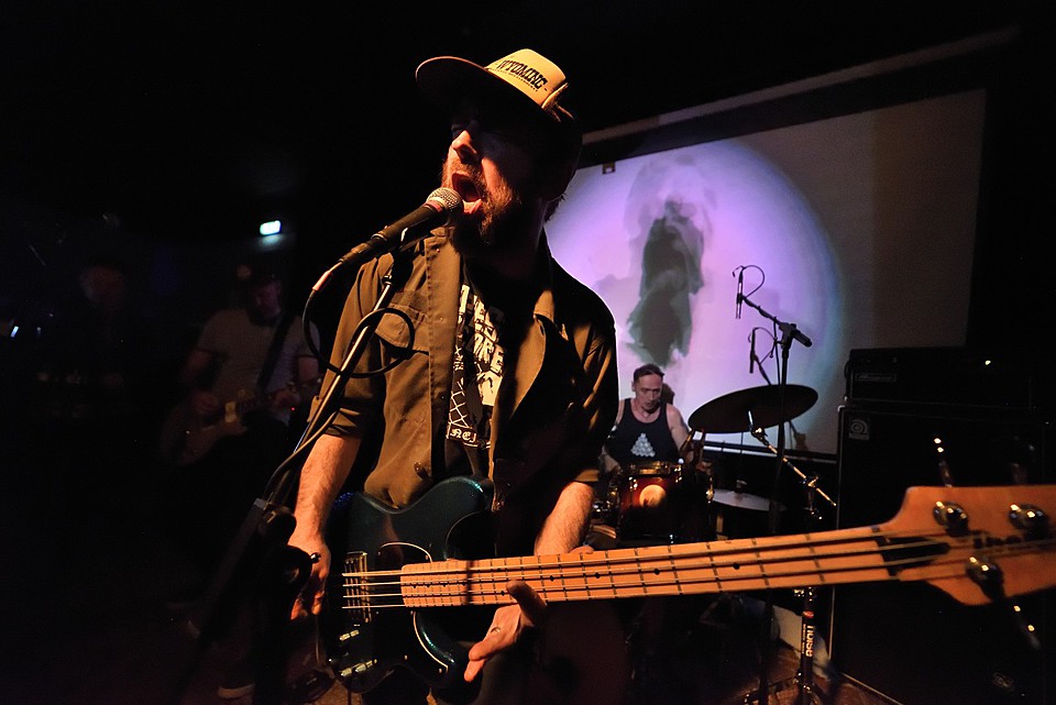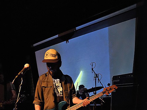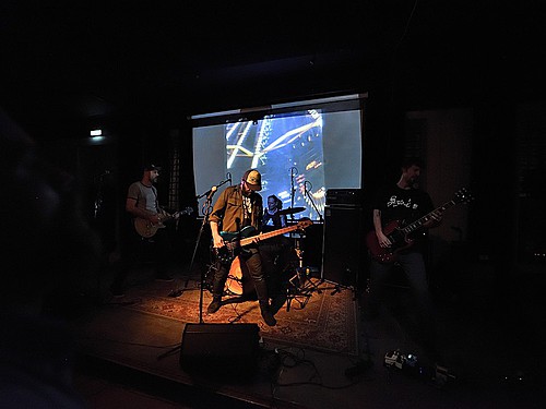CODE NAME LINHART je docela zajímavé seskupení tvořené vizuálně nesourodou čtveřicí – každý muzikant jako by vypadl z jiného hudebního spektra. Dohromady jim to ale ladilo a nezáleželo na tom, jestli hrají dark country nebo post-rock. Respektive nevím, co kapela vlastně hraje, někde jsem viděl uvedeno shoegaze, asi se dá použít i všeobjímající post-hardcore. Ona každá z asi pěti věcí byla jiná, ale nějaké styčné body se najít daly. V první řadě jednoduché, ale naprosto funkční bicí. Když jsme viděli sestavu složenou z kopáku, rytmičáku, hajtky, jednoho činelu a zvonce, koukali jsme v zimě jako zjara. (úsměv) Ale borec věděl, co potřebuje a hrál ta to minimum maximálně úderně a přesně. Kytarista působil velmi nenápadně a pokud opatrně nezpíval, hleděl k zemi, ale to, co hrál, znělo podmanivě. Trochu stranou byl zpěv, „schovaný“ nejen v kytarových plochách, ale i v těch syntetických. To vše projasňovalo banjo, které si nejvíce zahrálo v jedné countryovce, ale přitakávalo i v ostatních písních. Koncert trval šestnáct minut! Což je na jednu stranu skvělé, že kapela držela pozornost přítomných a nehrozilo, že diváci začnou odpadat, na druhou stranu když už vážila cestu, mohla dvě tři věci přidat, půlhodinu bych dal s chutí. (Johan)
