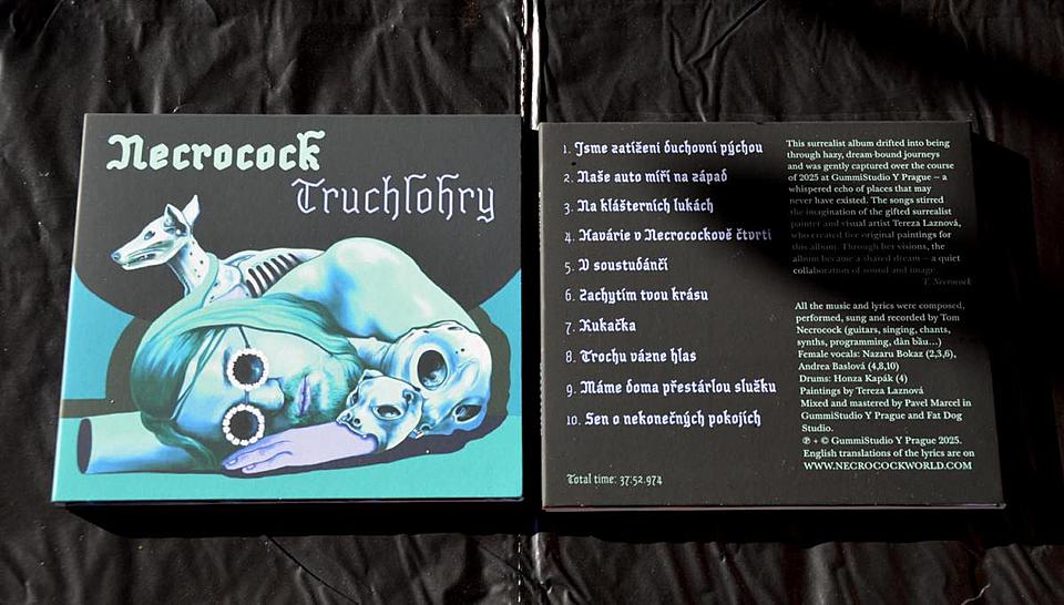 „Toto surrealistické album vzniklo mlhavými, snovými cestami a bylo jemně zachyceno v průběhu roku 2025 v GummiStudio Y Prague – jako šeptaná ozvěna míst, která možná nikdy neexistovala.“ (Necrocock)
