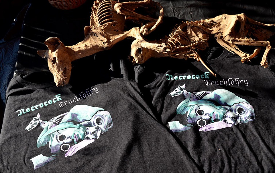 Nepřijde mi, že by v textech Tom vyloženě truchlil nad tím, co se v nich odehrává – samé nepěkné věci, havárie, neštěstí, tragédie. Buď to „dělá se svou adoptivní sestrou“, nebo si „na klášterních lukách užívá nahoty“, případně „je infikovaný černou žloutenkou“, „ordinuje fentanyl“, provozuje „noční pitvání“, ale taky končí tragicky, umírá při autohavárii nebo „k večeru vykrvácí“. K tomu patří i další (h)různé případy – zlámané sanice, nosy, jazylky, znásilněné kuchařky, vraždy atd. U každé jiné nahrávky by mě uvedené příběhy a texty vůbec přišly za hranou, ale v případech NECROCOCK a KAVIAR KAVALIER mi to vůbec divné nepřijde. (úsměv) Tom si se slovy hezky pohrává, mnohdy k sobě skládá slova, která spolu nesouvisí, ale při poslechu to nepřekáží, naopak. Surrealistická, dekadentní, originální… taková je Necrocockova poesie.