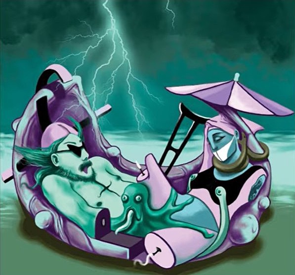 No to nevím. Řekl bych, že momentálně vypadám ještě mladší. Všechno to začalo tím, že mě Tereza v létě, kdy byla práce na „Truchlohrách“ v plném proudu, kontaktovala s tím, že je velkou fanynkou mé hudby a zdali bych nestál o nějakou spolupráci. Ozvala se v pravou chvíli, jelikož jsem si stále marně lámal hlavu tím, jak tentokrát nové album budu vizualizovat a jak pojmout obal. Nastudoval jsem si její práci a její dílo mě naprosto odrovnalo. Jo, to je přesně ta holka, která dá „Truchlohrám“ tu pravou podobu. Začal jsem jí posílat texty skladeb a ona obratem posílala skici k ilustracím. Stačilo trochu nasměrování, konzultace ohledně barevnosti a bylo to tam. Miluju ty její surrealistické obrazy. Nechal jsem si před Vánoci vyrobit jejich digitální tisky na půlmetrová plátna a zdobí mi teď ústřední stěnu v mém „parádním“ obýváku.