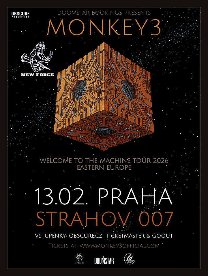 Zapomeňte na texty, Monkey3 vypráví příběhy pomocí vibrací a éterických ploch. Tato instrumentání formace ze švýcarského Lausanne se řítí do pražského klubu Strahov 007, kde už 13. února předvedou unikátní kombinaci psychedelického rocku, stoneru a space rocku.