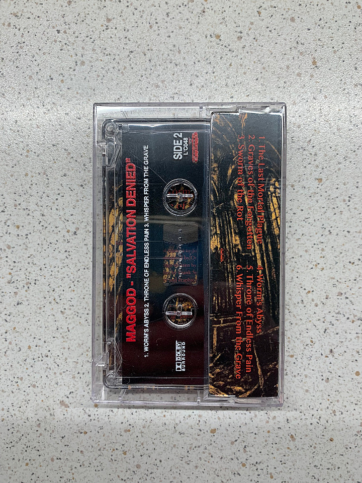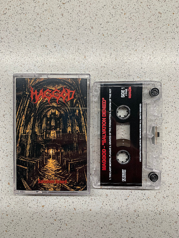 Na podzim roku 1992 zadržela policie během razie na letenské burze několik prodejců, které obvinila z přeprodávání zboží, pocházející z trestné činnosti. Nejmenovaný vysoký policejní důstojník dnes přiznává, že během utajené akce "sýkorka" došlo k několika přehmatům a do policejního skladu na Harfě putovala tenkrát i neoznačená krabice, která zde díky chybné archivační dokumentaci zůstala zapomenuta několik desetiletí. Letos v lednu ji během stěhování náhodně objevil Bohouš Němec a po jejím násilném otevření zde nalezl 100 ks magnetofonových pásek deathmetalové kapely MAGGOD s debutovým album "Salvation Denied", tedy celý náklad, který měl původně vyjít už v říjnu roku 1992. Nyní, díky laskavé péči L'inphantile Collective, vychází album konečně po 34 letech a vy si ho můžete ode dneška koupit.