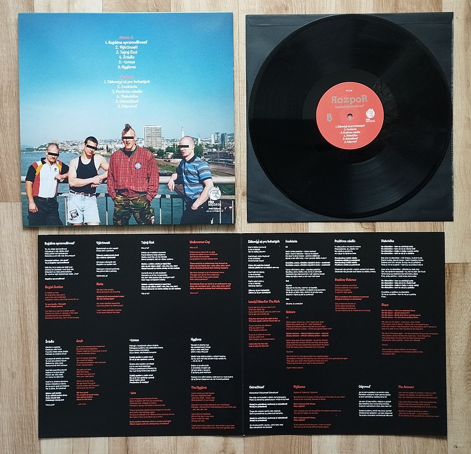 V roce 2022 jsem recenzoval zatím poslední album bratislavské skupiny ROZPOR „Hrubá sila“, na kterém je zachycený klasický slovenský punk s melodiemi i nějaké lehké úkroky k rock´n´rollu či swingu. Teď se mi na gramci točí deska, na které je zachycený studiový debut „Ilegálna spravodlivosť“ a je to o něco jiný hudební svět. On to naznačuje hned obal, na jehož přední straně jsou postavy pankáče a skinheada, postavy zdánlivě antagonistické, alespoň pohledem těch, jejichž znalosti skinheads končí u fašistických, rasistických nebo nacionalistických kapel a jejich příznivců. Hnutí skinheads ale bylo a je pestřejší, stejně tak muzika. Někteří členové ROZPORU se hlásili k SHARP, šlo tudíž o antirasistické jedince, jejichž heslem bylo „punks and skins united“. A autorka obrázku Ivana Koubová to hodila na papír a postavám dala na ruce okovy.